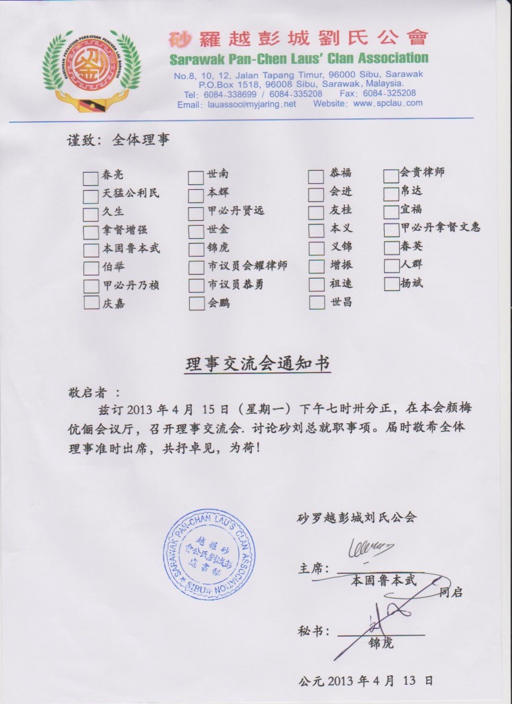 【通告】砂罗越彭城刘氏公会理事交流会通知书--15.04.2013 Posted by admin | On 15 4 月,2013 | In 未分類 Related Posts 【通告】砂罗越彭城刘氏公会讲演会主办会内幽默演讲及讲评选拔赛--15-9-2012 【通告】砂罗越彭城刘氏公会联合总会乐龄组第二届(2013-2014)第三次组委会议通知书--13.12.2013 2023年贷学金予受惠学子及刘氏宗亲子女暨刘雅芬教育奖励金仪式--10.09.2023 About Author admin Leave a Reply發佈留言必須填寫的電子郵件地址不會公開。 必填欄位標示為 *顯示名稱 * 電子郵件地址 * 個人網站網址 在瀏覽器中儲存顯示名稱、電子郵件地址及個人網站網址,以供下次發佈留言時使用。 Δ