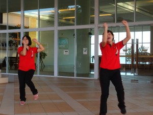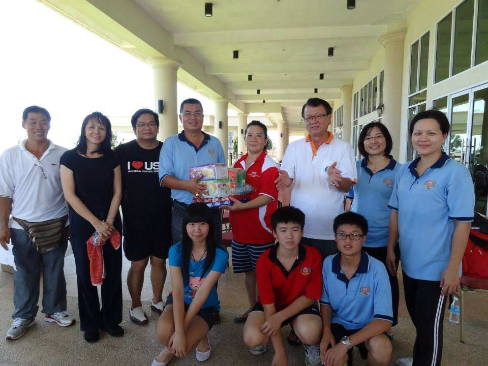 世甲宗亲及伯举宗长分别赠送纪念品予赞美操老师。