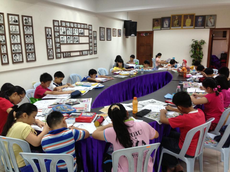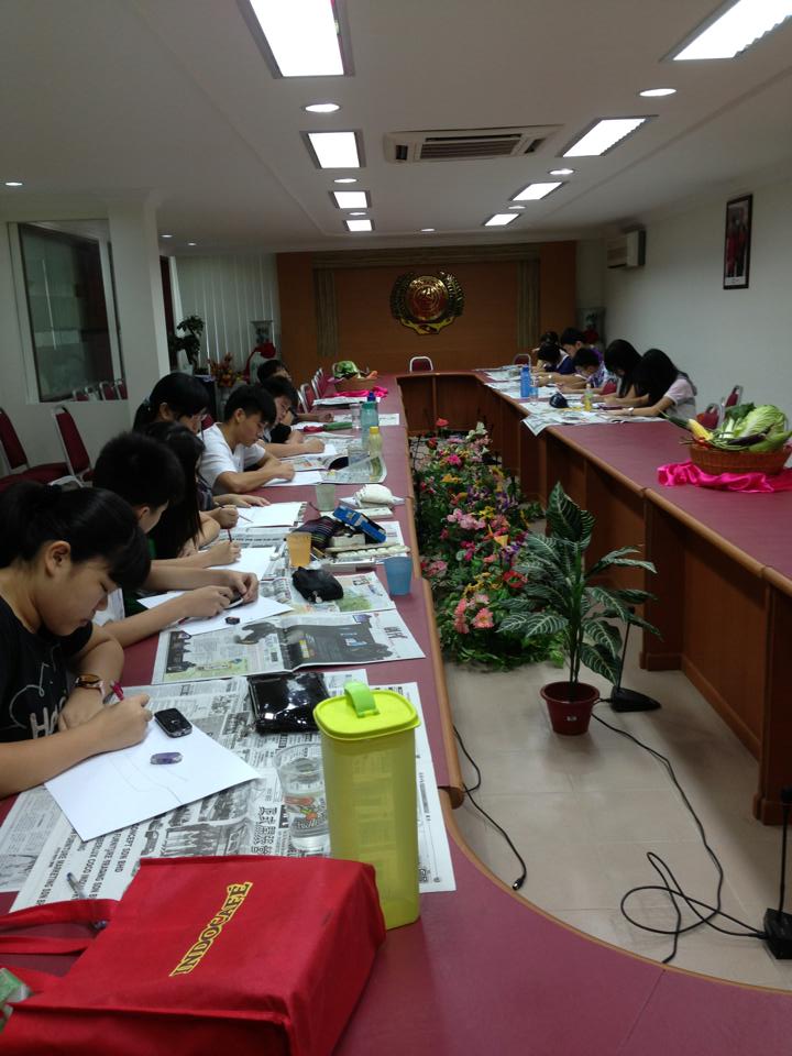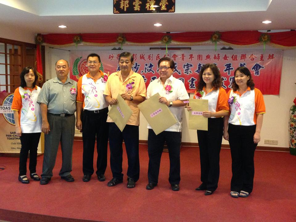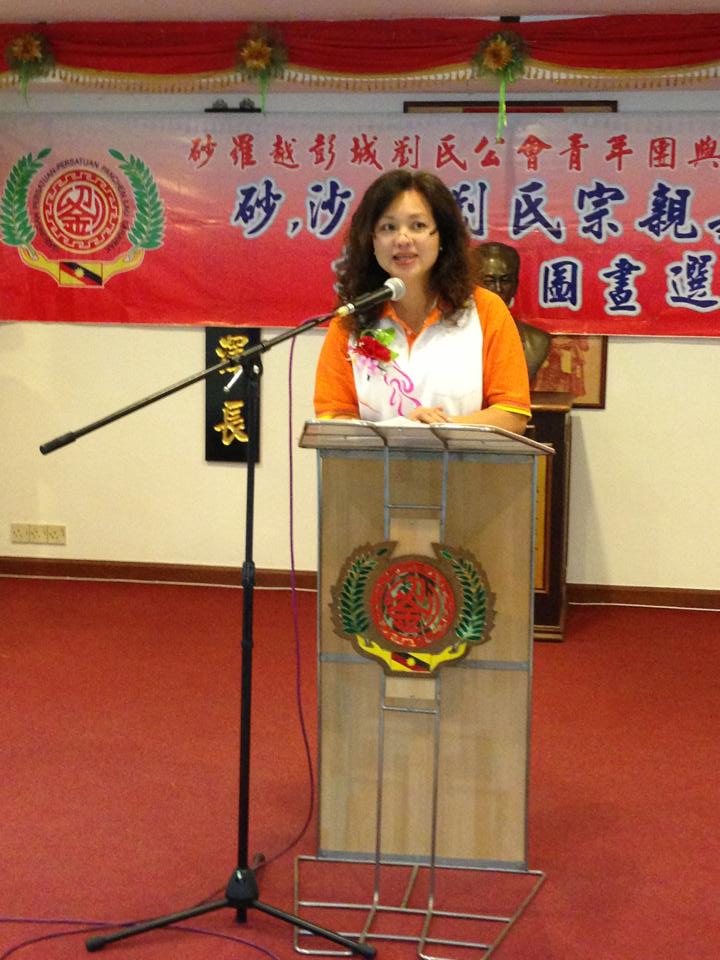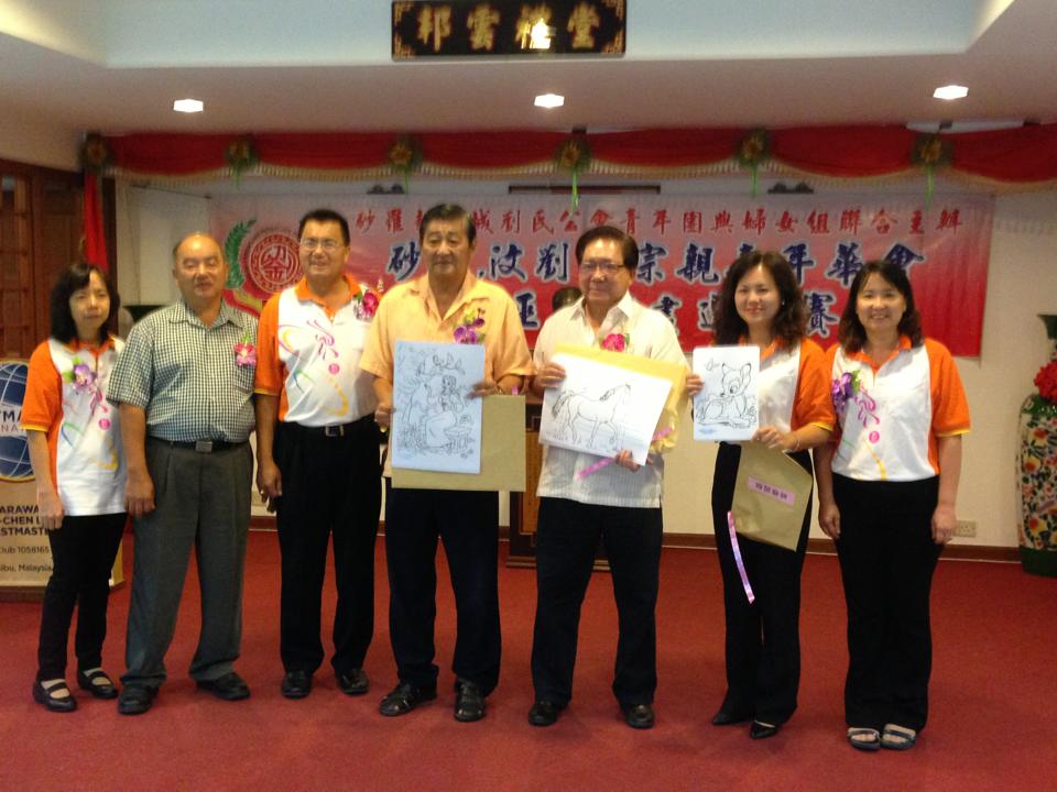 上下图片为主宾兼本会署理会长久生宗长(左4)为砂,沙,汶刘氏宗亲嘉年华会美术比赛诗巫区选拔赛主持揭封礼。右3为主席本固鲁本武宗长。右2为筹备会主席毛小玉。