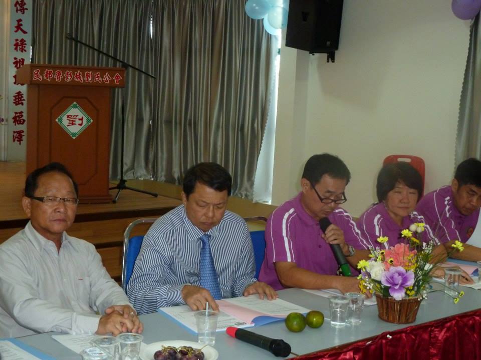 民都鲁彭城刘氏公会青年团团长惠兰宗亲致词。感谢各省宗亲能来民都鲁做客,这是本会的荣幸,在本会双喜临门的当儿,大家既能踊跃出席,为此次庆典增添不少光彩。民都鲁虽是小市镇,我仍希望各地宗亲能在短暂逗留期间,能有个愉快的旅程。