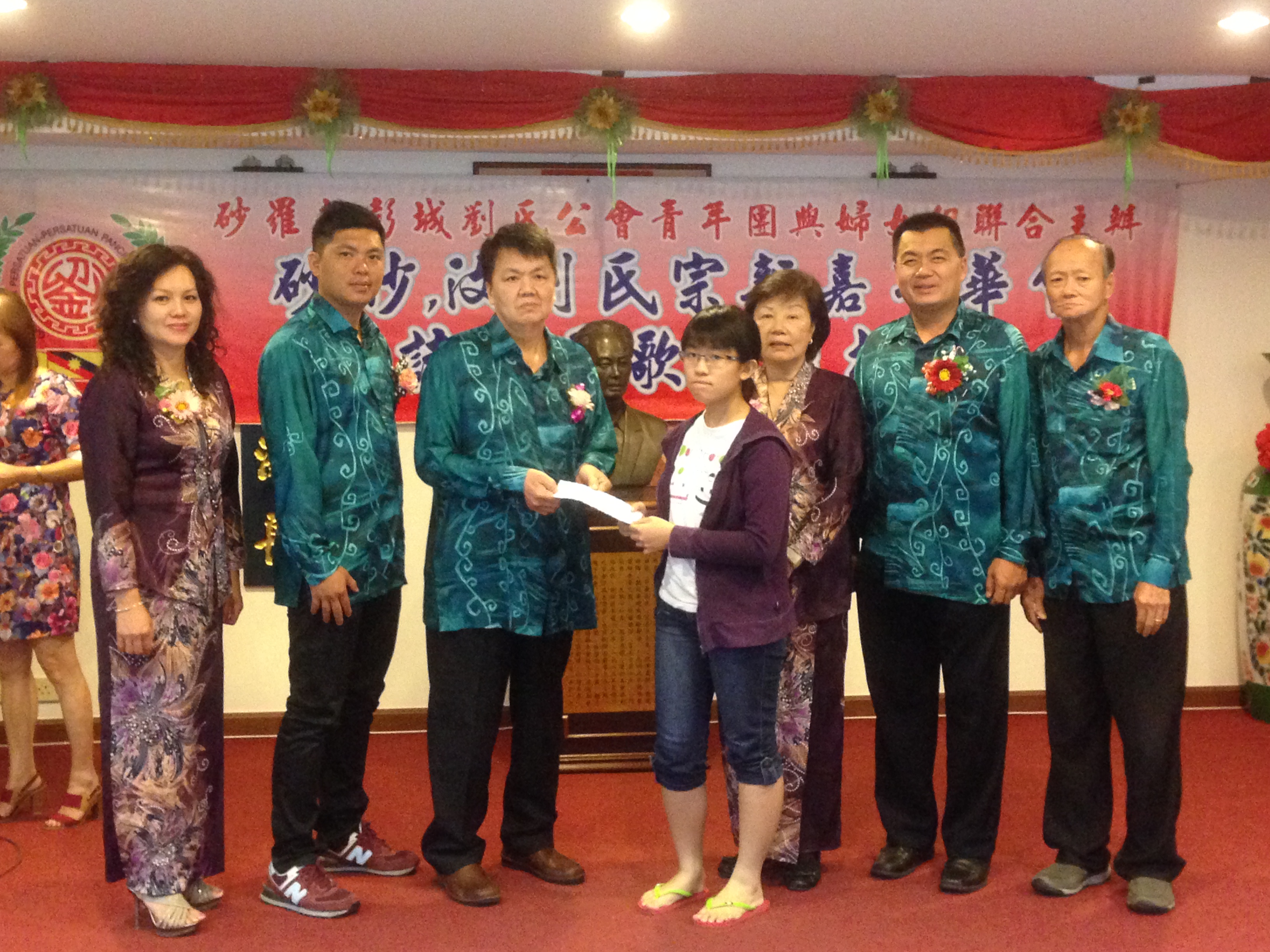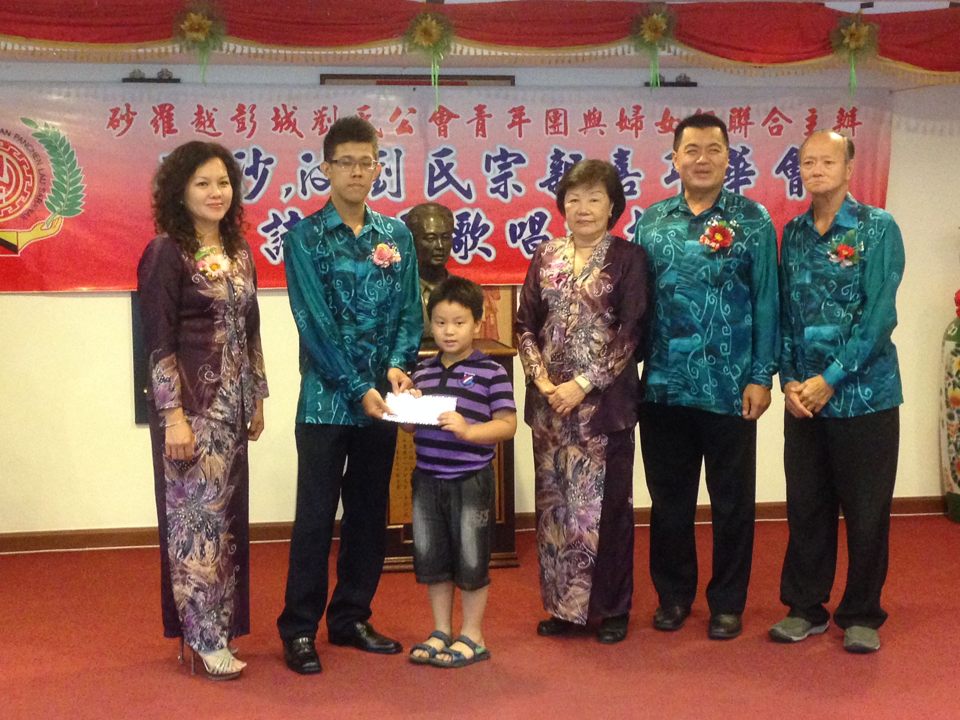 砂罗越彭城刘氏公会青年团妇女组联合主办第28届砂沙汶彭城刘氏宗亲【嘉年华会】选拔赛闭幕及颁奖礼---24/08/2014 Posted by admin | On 27 8 月,2014 | In 未分類 男公开组比赛:刘世凯。 女公开组比赛 刘氏太太组比赛:毛小玉。 闭幕前合影。 赠送纪念品予评审员。由主席本固鲁本武,团长帛达及主任甲必丹拿督文惠赠送。 主任甲必丹拿督文惠致谢词。 闭幕主宾本会会长天猛公拿督利民宗长致勉励词。 团长及主任赠送礼物予主宾。 全体合影。 以下图片为颁发各项比赛优胜者。 Related Posts 砂罗越彭城刘氏公会第35届砂沙汶彭城刘氏宗亲【嘉年华会】歌唱,演讲,美术及书法选拔赛简报 第26届砂沙汶彭城刘氏宗亲【嘉年华会】授旗礼--6-12-2012 砂罗越彭城刘氏公会第19届青年团/第20届妇女组(2019-2020)第一次团委组委联席会议--22-1-2019 About Author admin Leave a Reply發佈留言必須填寫的電子郵件地址不會公開。 必填欄位標示為 *顯示名稱 * 電子郵件地址 * 個人網站網址 在瀏覽器中儲存顯示名稱、電子郵件地址及個人網站網址,以供下次發佈留言時使用。 Δ