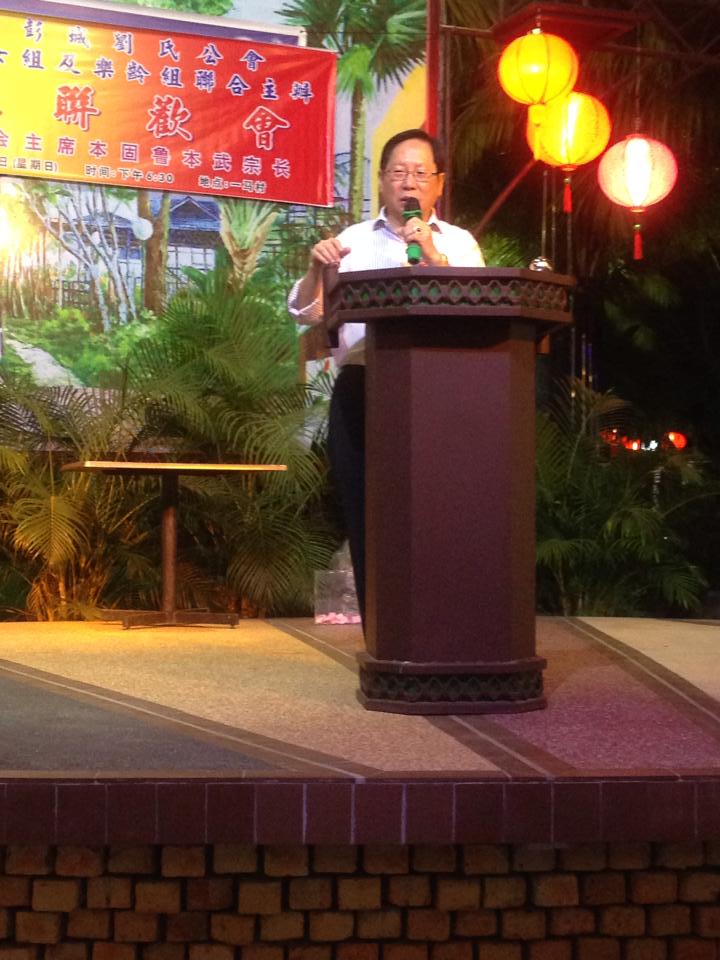本会会长天猛公利民致词。公会欢庆中秋适逢国庆日,国家繁荣,民族和睦共处,是人民与国家领袖共同付出的成果。各族文化与宗教彼此包容,并非偶然,是先辈以血汗换来。极端分子挑起种族不合,受苦的是人民。当华族庆祝中秋时,勿忘对国家的效忠,这也是每个人民的责任。我感到自豪的是,公会组织健全,宗亲通力合作,使会务有卓越的表现,相信理事将会为宗亲作出更好的服务与贡献。