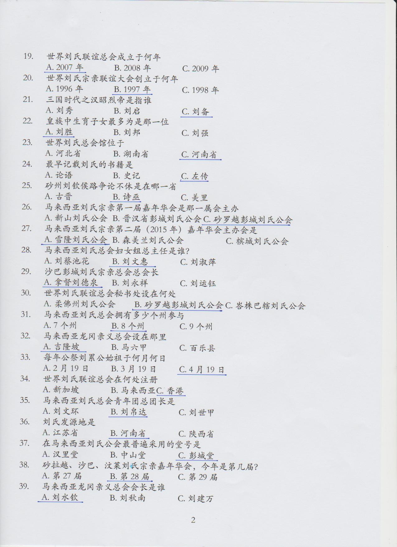 第六届【马来西亚刘氏宗亲常识比赛】暨 第十二届【砂拉越彭城刘氏宗亲常识比赛】中学组答案出炉--28/09/2014 Posted by admin | On 9 10 月,2014 | In 未分類 Related Posts 砂罗越彭城刘氏公会讲演会生日会/练习会-21/9/2010 砂罗越彭城刘氏公会讲演会第十七届(2023-2024)理事宣誓就职典礼--11-12-2023 砂罗越彭城刘氏公会青年团妇女组联合主办第29届砂沙汶彭城刘氏宗亲【嘉年华会】选拔赛闭幕及颁奖礼--23-8-2015 About Author admin Leave a Reply發佈留言必須填寫的電子郵件地址不會公開。 必填欄位標示為 *顯示名稱 * 電子郵件地址 * 個人網站網址 在瀏覽器中儲存顯示名稱、電子郵件地址及個人網站網址,以供下次發佈留言時使用。 Δ