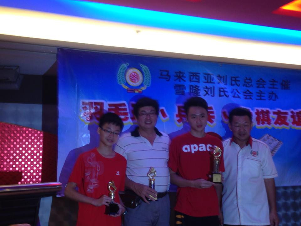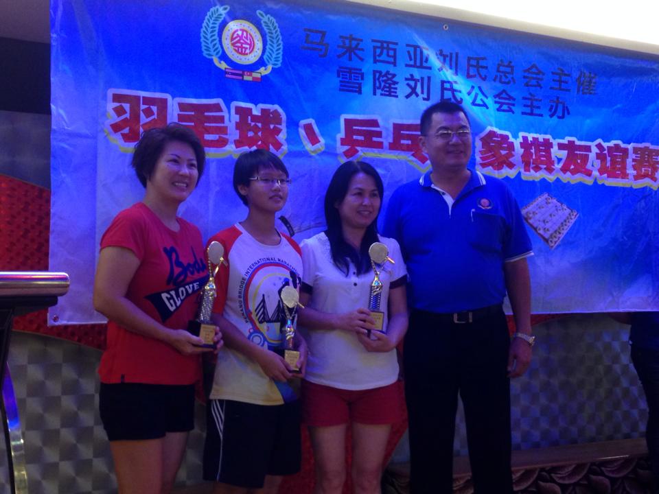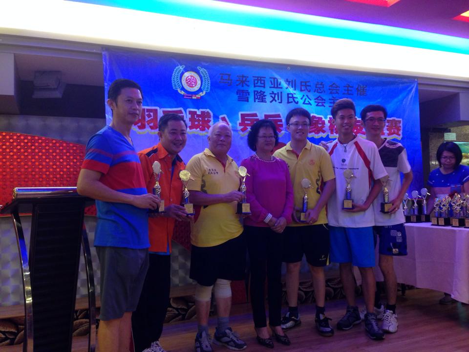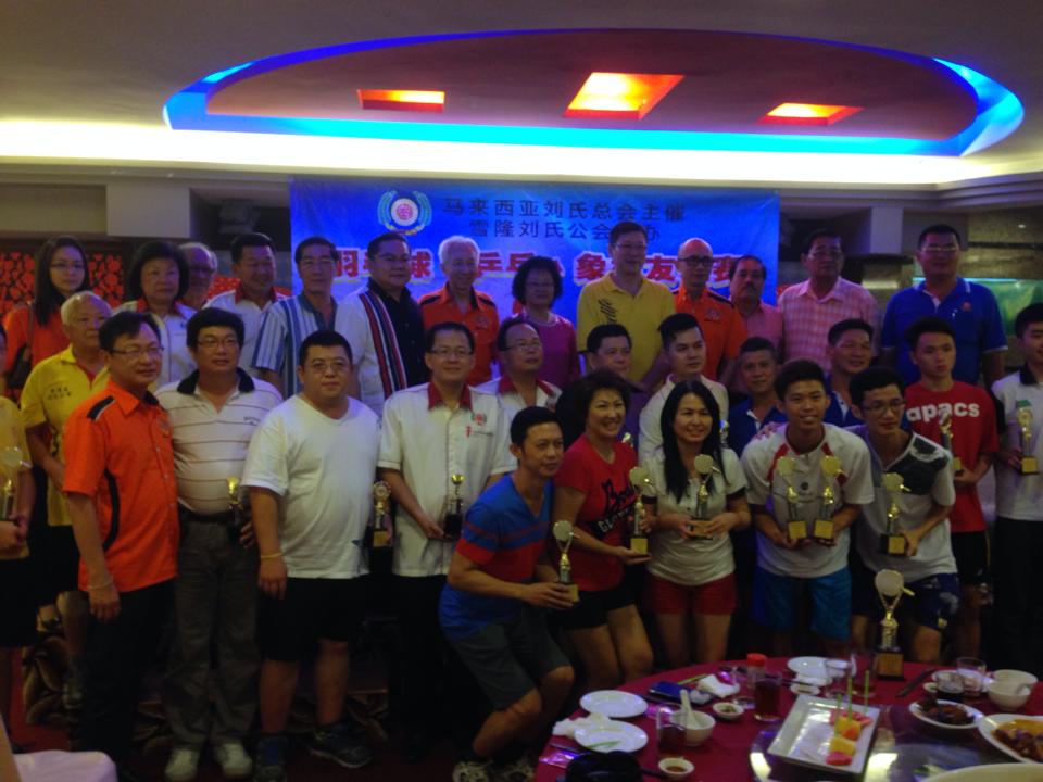 马来西亚刘氏总会主催。雪隆刘氏公会主办羽球,兵乓及象棋友谊赛颁奖礼--11-10-2014 Posted by admin | On 14 10 月,2014 | In 未分類 参与友谊赛队伍列队。 马来西亚刘氏总会青年团羽球双打代表:左起为刘锦宪、刘宜福、刘华秋及刘平昌。 男乒乓组前三名得奖者与拿督威拉国民宗长合影。 男兵乓组双打前三名得奖者与拿督威拉国民夫人合影。 女兵乓组前三名得奖者与总团长帛达宗长合影。 男兵乓组单打前三名得奖者与顾问世南宗长合影。 象棋组前三名得奖者与建万副总会长合影。 全体得奖合影留念。 Related Posts 【通告】国际讲演会87区域S3分区主办.砂罗越彭城刘氏公会讲演会承办[幽默演讲及讲评比赛]--4-10-2015 【通告】泗里街彭城刘氏公会主办第二十七届沙砂汶刘氏宗亲嘉年华会 【各项活动程序表】--13-15/12/2013 马来西亚刘氏总会•属会会长/主席名录--07-09-2012 About Author admin Leave a Reply發佈留言必須填寫的電子郵件地址不會公開。 必填欄位標示為 *顯示名稱 * 電子郵件地址 * 個人網站網址 在瀏覽器中儲存顯示名稱、電子郵件地址及個人網站網址,以供下次發佈留言時使用。 Δ