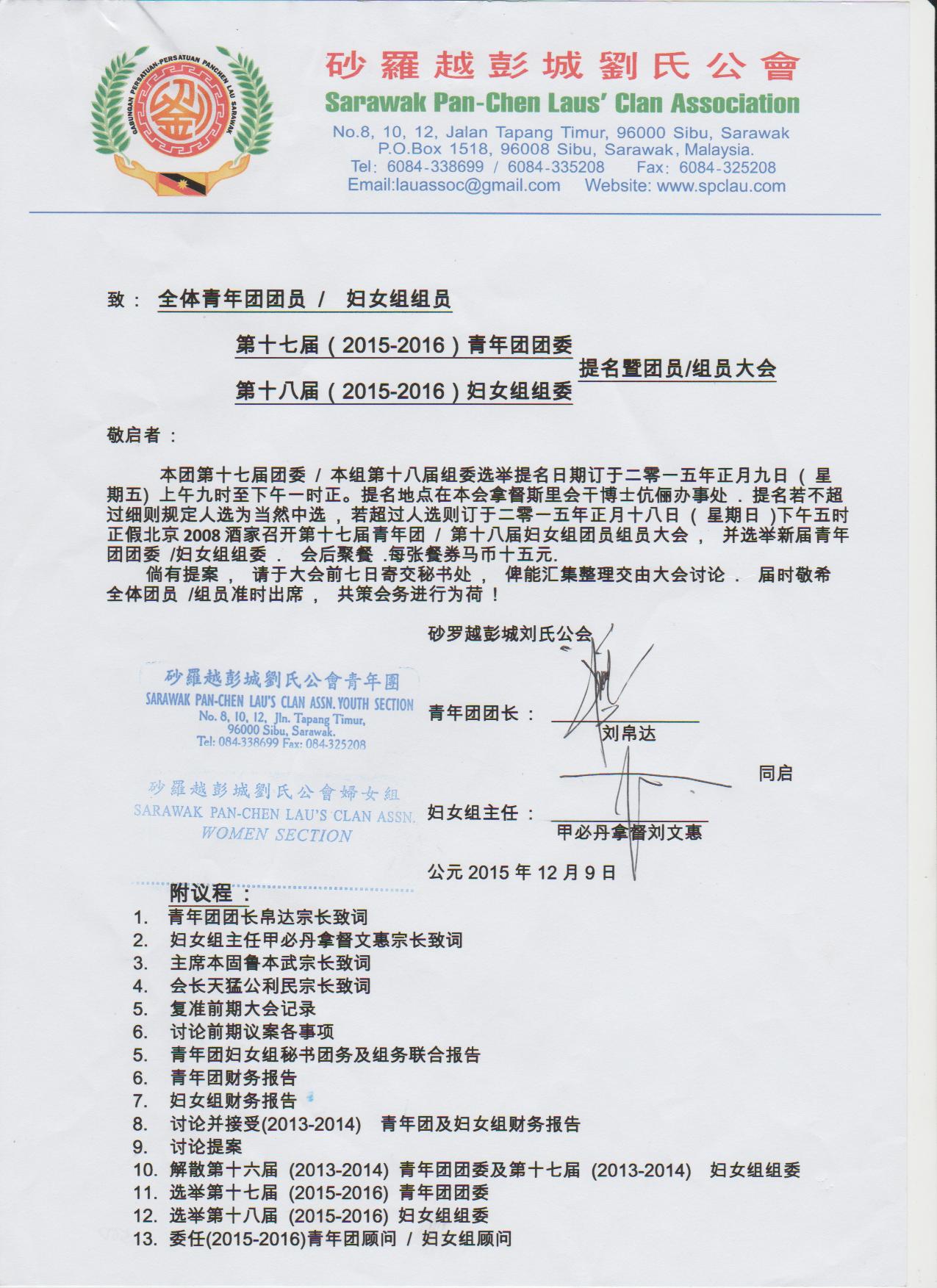 【通告】砂罗越彭城刘氏公会第十七届(2015-2016)青年团团委.第十八届(2015-2016)妇女组组委提名09.01.2015 暨团员/组员大会--18.01.2015 Posted by admin | On 29 12 月,2014 | In 未分類 Related Posts 砂罗越彭城刘氏公会乐龄组庆祝中秋节暨组员生日会晚宴---05/10/2012 砂罗越彭城刘氏公会派队参与婆羅洲文化節大游行--06-07-2012 砂罗越彭城刘氏公会青年团妇女组联合主办孝亲节联欢会通告--07.05.2017 About Author admin Leave a Reply發佈留言必須填寫的電子郵件地址不會公開。 必填欄位標示為 *顯示名稱 * 電子郵件地址 * 個人網站網址 在瀏覽器中儲存顯示名稱、電子郵件地址及個人網站網址,以供下次發佈留言時使用。 Δ