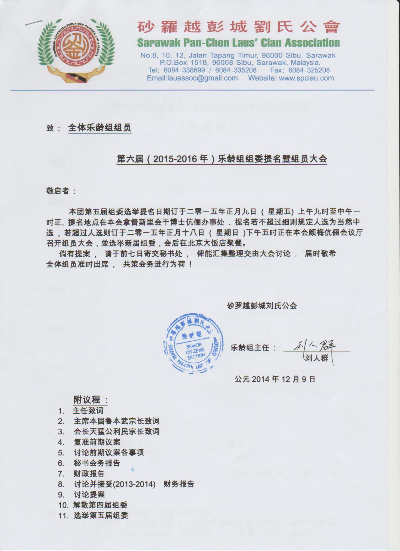 【通告】砂罗越彭城刘氏公会第六届(2015-2016)乐龄组组委提名--09.01.2015暨组员大会--18.01.2015 Posted by admin | On 29 12 月,2014 | In 未分類 Related Posts 砂罗越彭城刘氏公会讲演会与诗巫福州公会讲演会进行联合练习会-8-6-2020 砂罗越彭城刘氏公会青年团妇女组联合主办中秋节联欢会--8-9-2018 马来西亚刘氏总会青年团暨妇女组主催.砂罗越彭城刘氏公会青年团妇女组联合主办.各州属属会青年团妇女组联合协办第五届[马来西亚刘氏宗亲常识比赛] 暨 第十一届[砂罗越彭城刘氏联合总会常识比赛] 各州属属会得奖名次揭晓-15-09-2013 About Author admin Leave a Reply發佈留言必須填寫的電子郵件地址不會公開。 必填欄位標示為 *顯示名稱 * 電子郵件地址 * 個人網站網址 在瀏覽器中儲存顯示名稱、電子郵件地址及個人網站網址,以供下次發佈留言時使用。 Δ