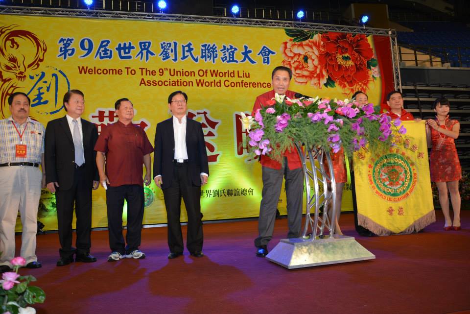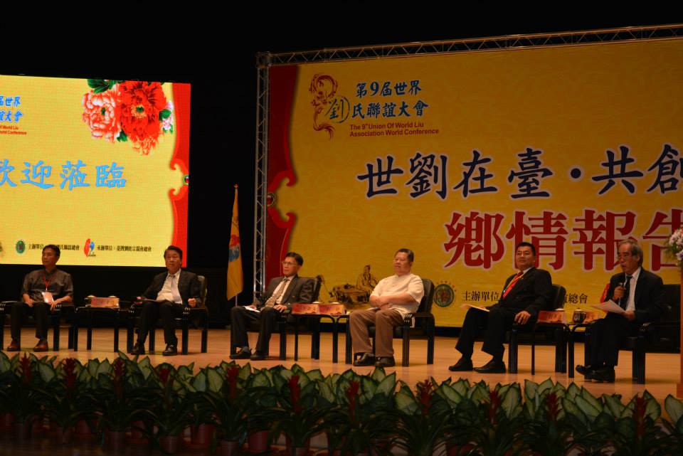 第九屆世界劉氏聯誼大會系列活動成功在台灣省苗栗縣隆重舉行--高峰论坛、乡亲报告、欢送晚宴及会旗交接仪式--2014年9月14日