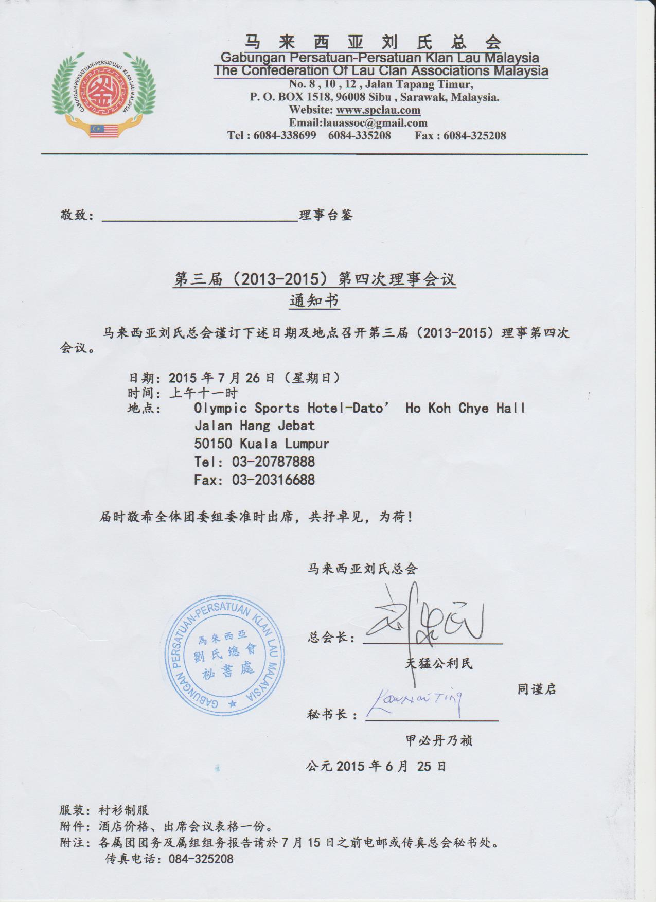 【通告】马来西亚刘氏总会第三届(2013-2015)第四次理事会议/团委组委联席会议通知书及筹组马来西亚刘氏总会乐龄组--26.07.2015 Posted by admin | On 1 7 月,2015 | In 未分類 Related Posts 砂罗越彭城刘氏公会第33届砂沙汶彭城刘氏宗亲【嘉年华会】慰劳宴暨颁发2019年常识比赛得奖者--12-1-2020 砂罗越彭城刘氏公会讲演会第十届(2016-2017)理事就职典礼暨十周年庆典--8-10-2016 砂罗越彭城刘氏公会主办孝亲敬老会(9.6.2024) About Author admin Leave a Reply發佈留言必須填寫的電子郵件地址不會公開。 必填欄位標示為 *顯示名稱 * 電子郵件地址 * 個人網站網址 在瀏覽器中儲存顯示名稱、電子郵件地址及個人網站網址,以供下次發佈留言時使用。 Δ