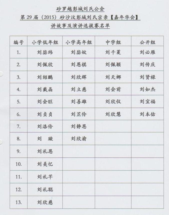 【通告】砂罗越彭城刘氏公会青年团妇女组联合主办 第29届(2015)砂沙汶彭城刘氏宗亲【嘉年华会】各组选拔赛参赛名单--22-23.08.2015 Posted by admin | On 21 8 月,2015 | In 未分類 Related Posts 泗里街彭城刘氏公会主办第27届砂沙汶彭城刘氏宗亲嘉年华会欢迎宴--13-12-2013 砂罗越彭城刘氏公会第18届(2017-2018)青年团团委、第19届(2017-2018)妇女组组委及第6届(2017-2018)乐龄组组委阵容名单--8-1-2017 8天7晚莆田/福建/闽清/河南平顶山返乡祭祖交流团及8天7晚莆田/福建/闽清/武夷山返乡祭祖交流团通告--14/4/2018至21/4/2018 About Author admin Leave a Reply發佈留言必須填寫的電子郵件地址不會公開。 必填欄位標示為 *顯示名稱 * 電子郵件地址 * 個人網站網址 在瀏覽器中儲存顯示名稱、電子郵件地址及個人網站網址,以供下次發佈留言時使用。 Δ