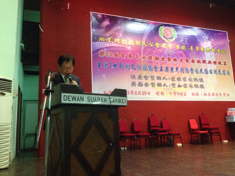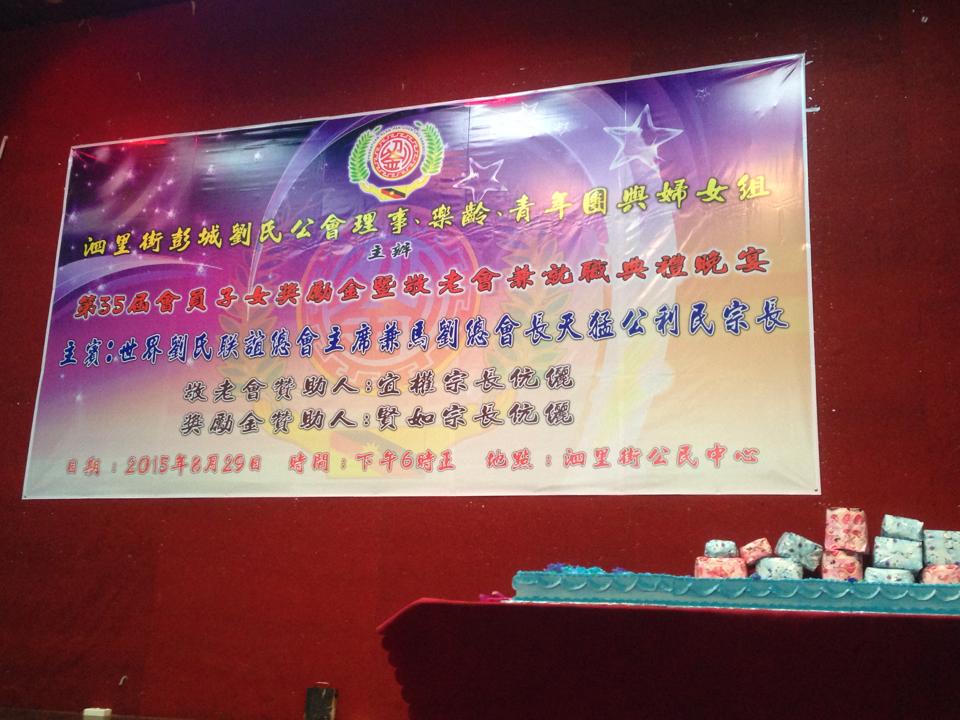马来西亚刘氏总会属会-泗里街彭城刘氏公会主办第35届会员子女奖励金、敬老会暨新届就职典礼晚宴--29-8-2015