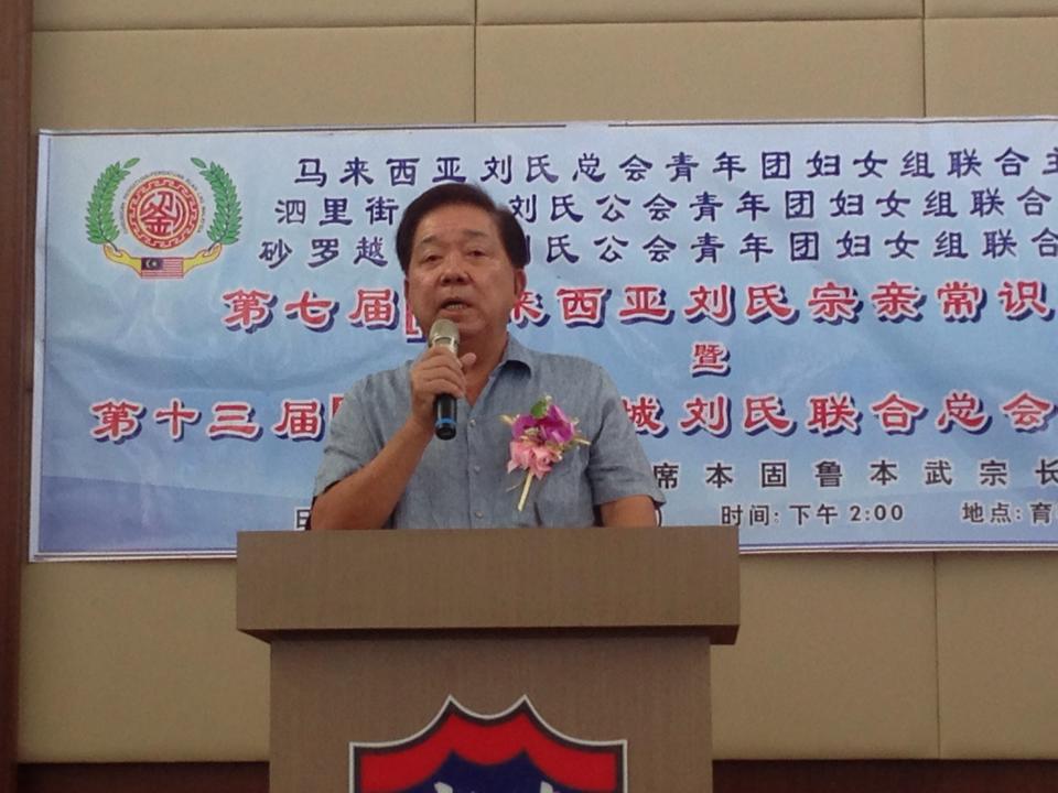 青年团团长帛达宗长致词。宗亲常识比赛带有增加宗亲们的常识,以及联络宗亲情谊的举办宗旨,它将来会持续吸引宗亲参与比赛。参加是项比赛的宗亲不但可以接触到并获取国际性,地方性的时局动态等多元化资讯,也可以从中了解和掌握刘氏家族发展历史。 除了提升宗亲们的常识水平,此项比赛亦是一个促进宗谊的平台。宗亲们相聚一起,相互交流,彼此认识。