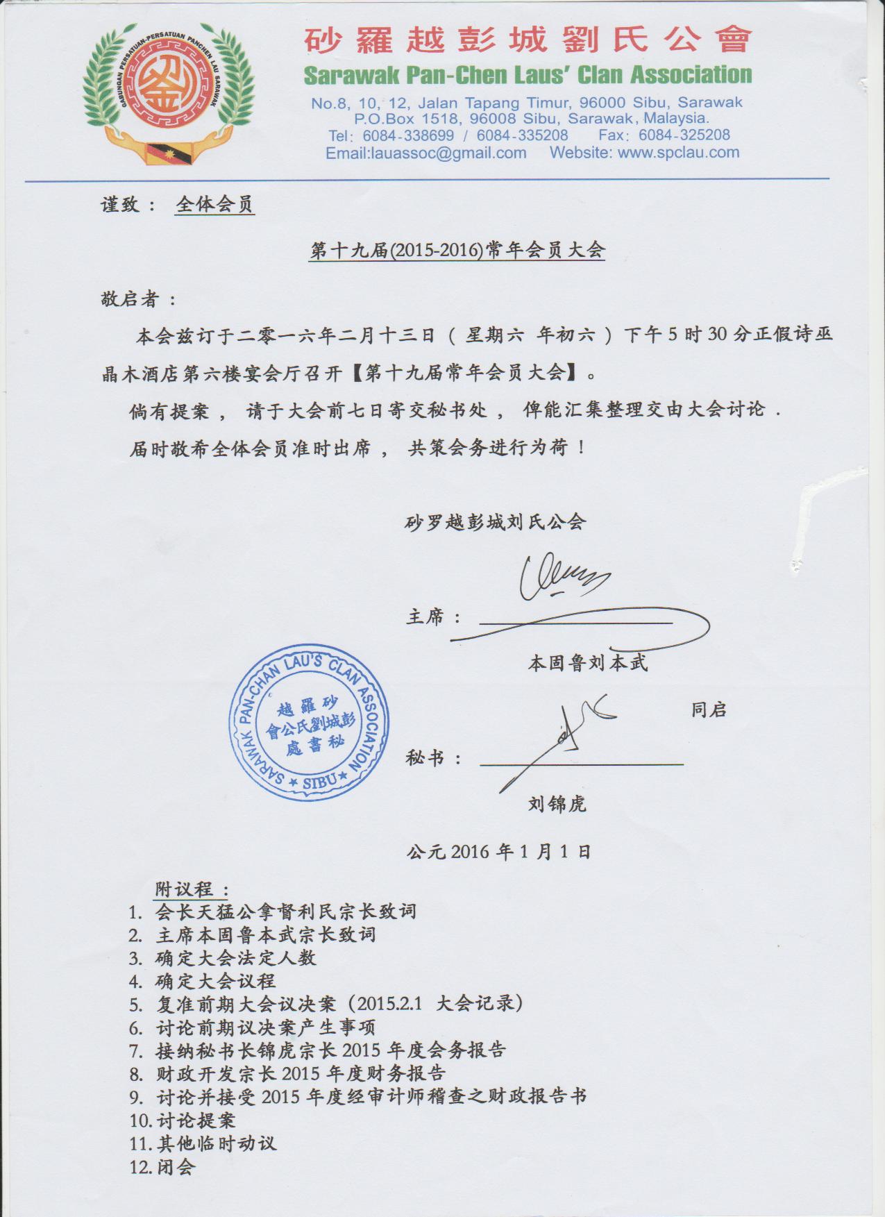 【通告】砂罗越彭城刘氏公会第十九届(2015-2016)常年会员大会--13.02.2016 Posted by admin | On 30 12 月,2015 | In 未分類 Related Posts 砂罗越彭城刘氏公会妇女组参加华团妇女组主办【姓氏家族树比赛】荣获团体组冠军--27-6-2022 砂罗越彭城刘氏公会联合总会寻根祭祖恳亲--【中国福建闽清】--11-10-2015 砂罗越彭城刘氏公会青年团、妇女组及乐龄组联合主办中秋联欢会--25-9-2015 About Author admin Leave a Reply發佈留言必須填寫的電子郵件地址不會公開。 必填欄位標示為 *顯示名稱 * 電子郵件地址 * 個人網站網址 在瀏覽器中儲存顯示名稱、電子郵件地址及個人網站網址,以供下次發佈留言時使用。 Δ