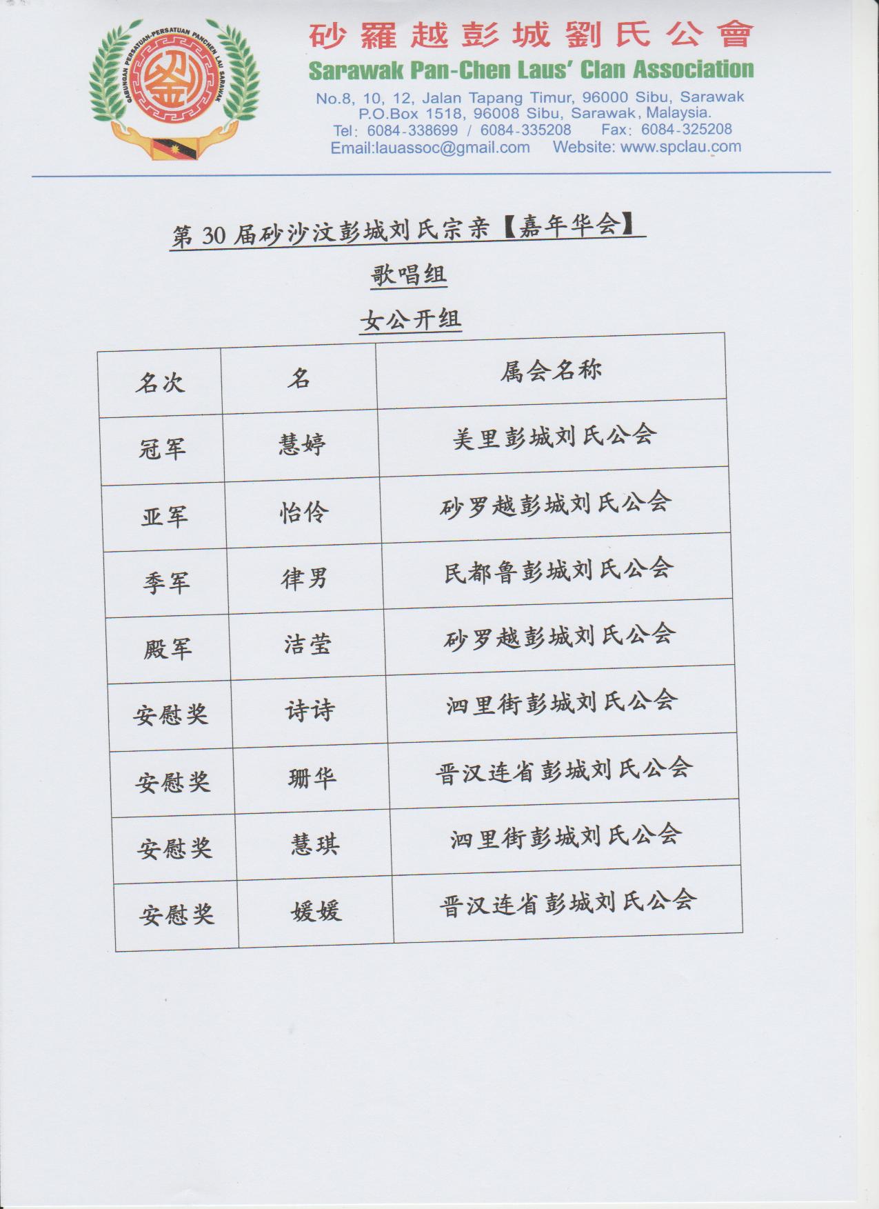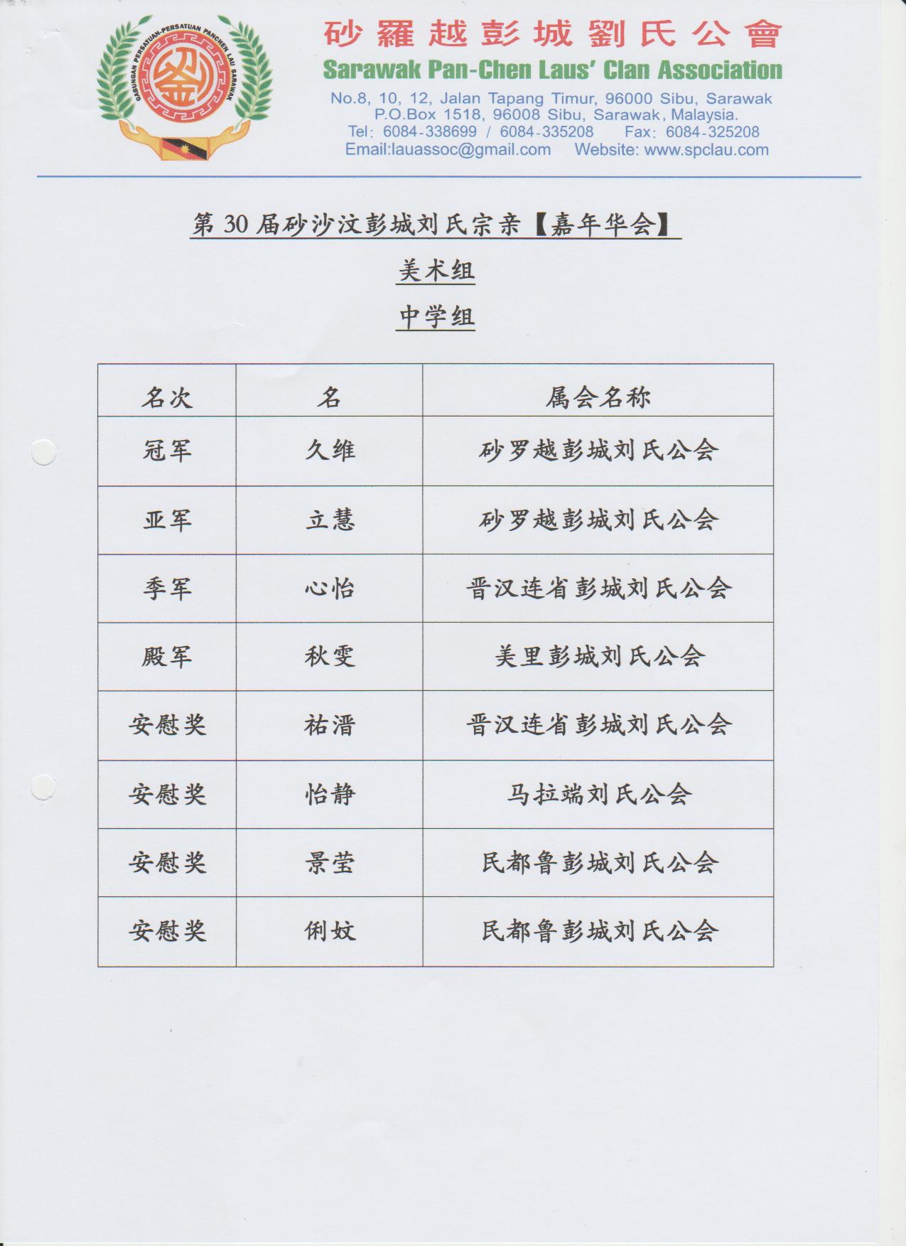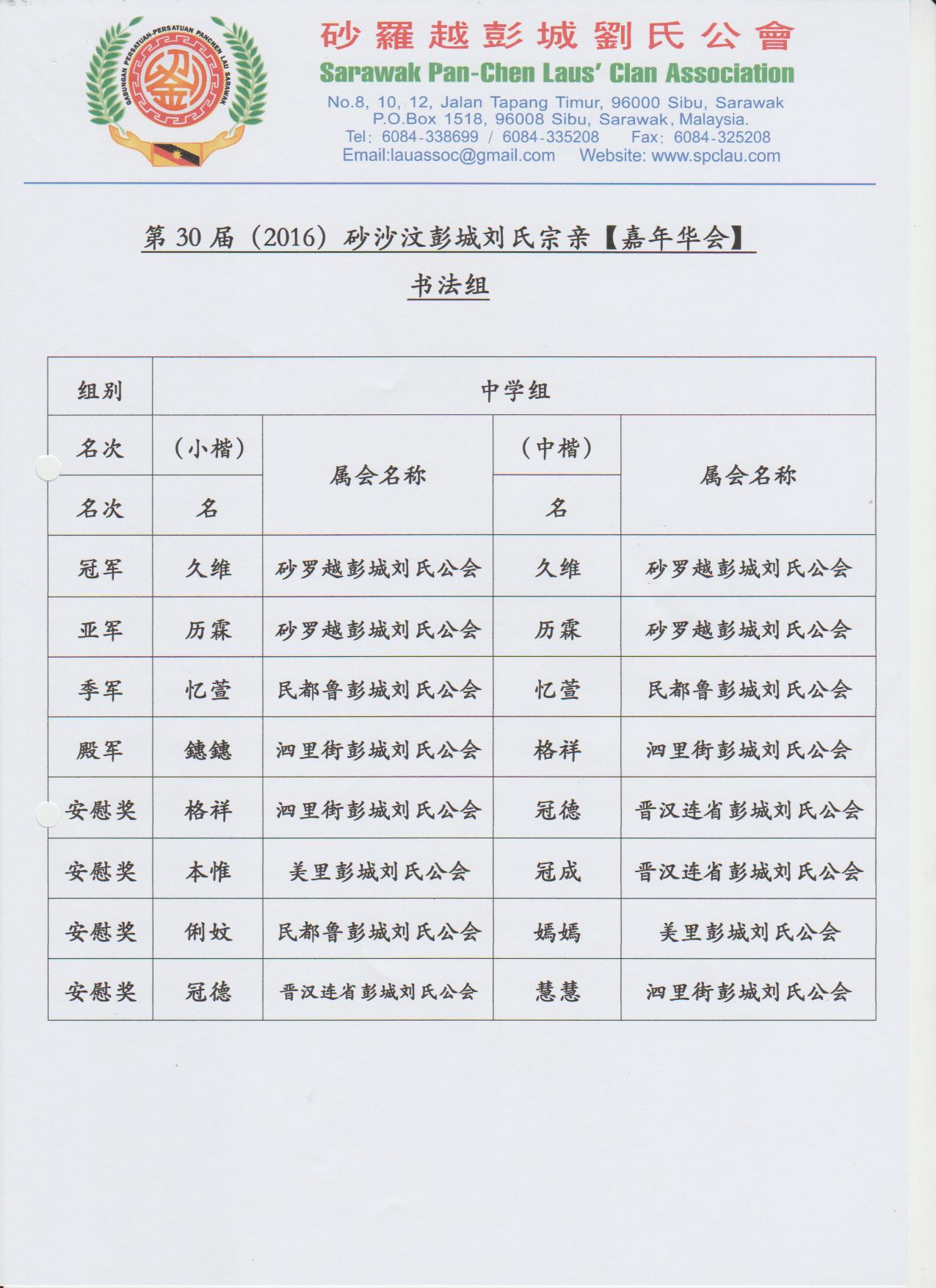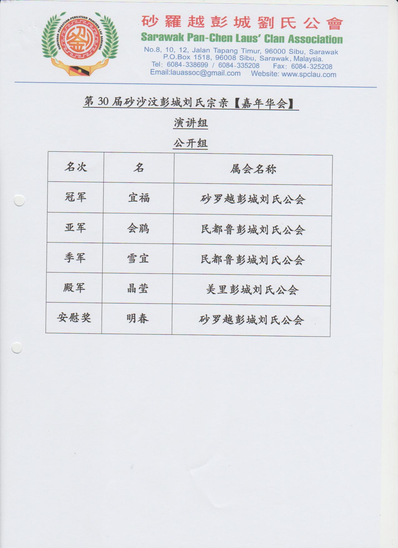 第30届砂沙汶彭城刘氏宗亲【嘉年华会】各组成绩--02-04.12.2016 Posted by admin | On 4 12 月,2016 | In 未分類 Related Posts 昔加挽刘氏公会及峇株吧辖刘氏公会莅临诗巫参加第一届马刘嘉年华会及拜访砂罗越彭城刘氏公会交流会--20-3-2014 马来西亚砂拉越地图 诗巫省华团 主催.砂罗越彭城刘氏公会 主办 2023年婆罗洲文化节-华族文化风采 【儿童填色比赛】--15-7-2023 About Author admin Leave a Reply發佈留言必須填寫的電子郵件地址不會公開。 必填欄位標示為 *顯示名稱 * 電子郵件地址 * 個人網站網址 在瀏覽器中儲存顯示名稱、電子郵件地址及個人網站網址,以供下次發佈留言時使用。 Δ