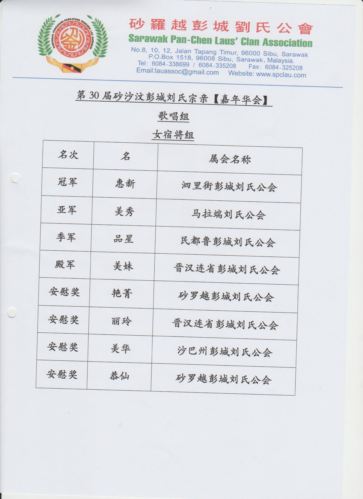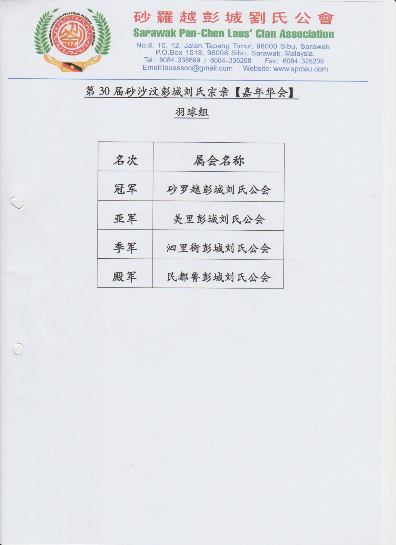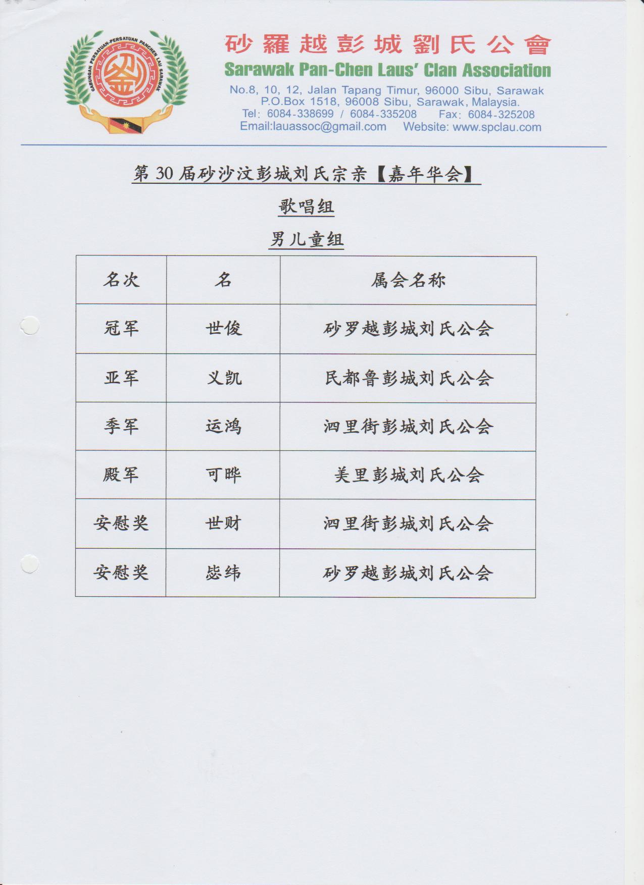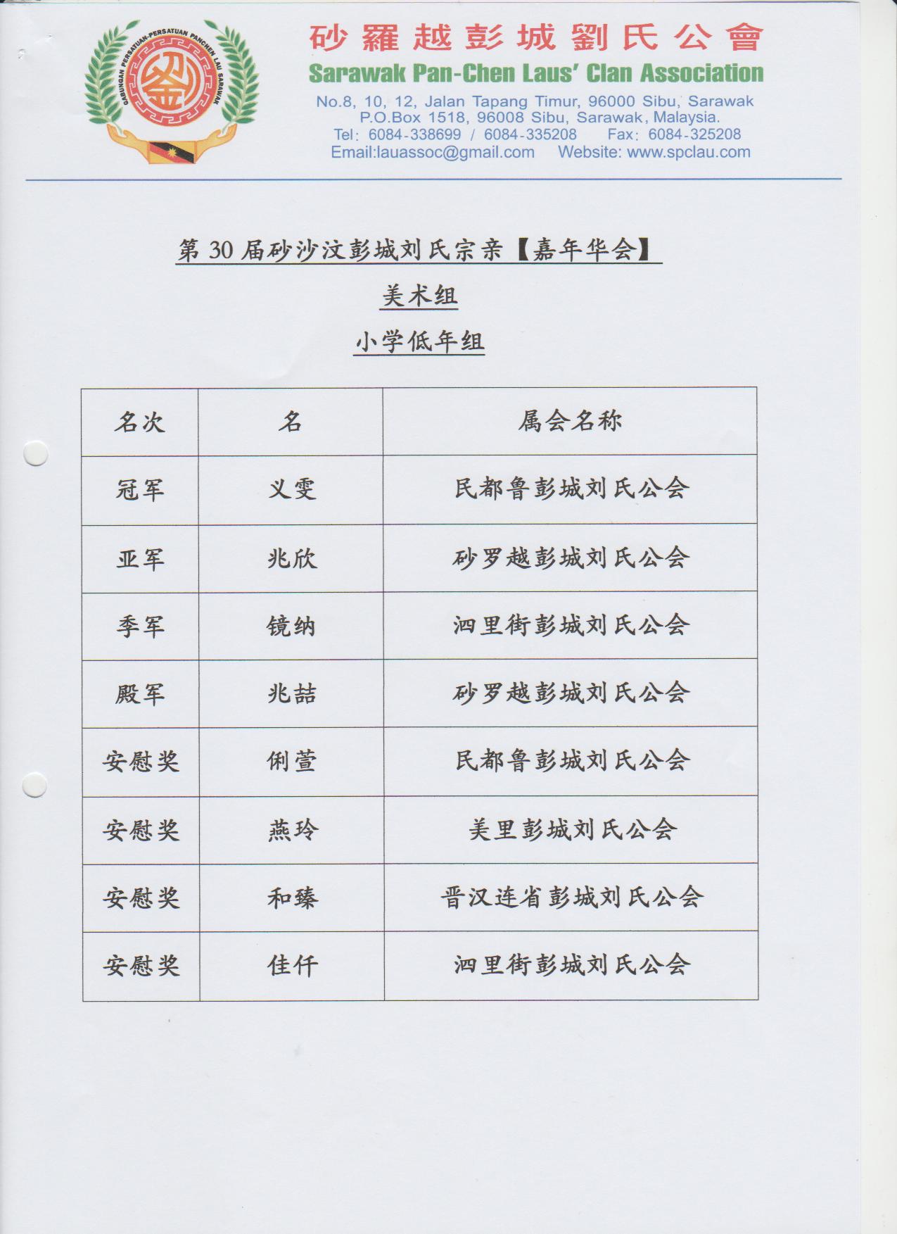 第30届砂沙汶彭城刘氏宗亲【嘉年华会】各组成绩--02-04.12.2016 Posted by admin | On 4 12 月,2016 | In 未分類 Related Posts 昔加挽刘氏公会及峇株吧辖刘氏公会莅临诗巫参加第一届马刘嘉年华会及拜访砂罗越彭城刘氏公会交流会--20-3-2014 马来西亚砂拉越地图 诗巫省华团 主催.砂罗越彭城刘氏公会 主办 2023年婆罗洲文化节-华族文化风采 【儿童填色比赛】--15-7-2023 About Author admin Leave a Reply發佈留言必須填寫的電子郵件地址不會公開。 必填欄位標示為 *顯示名稱 * 電子郵件地址 * 個人網站網址 在瀏覽器中儲存顯示名稱、電子郵件地址及個人網站網址,以供下次發佈留言時使用。 Δ