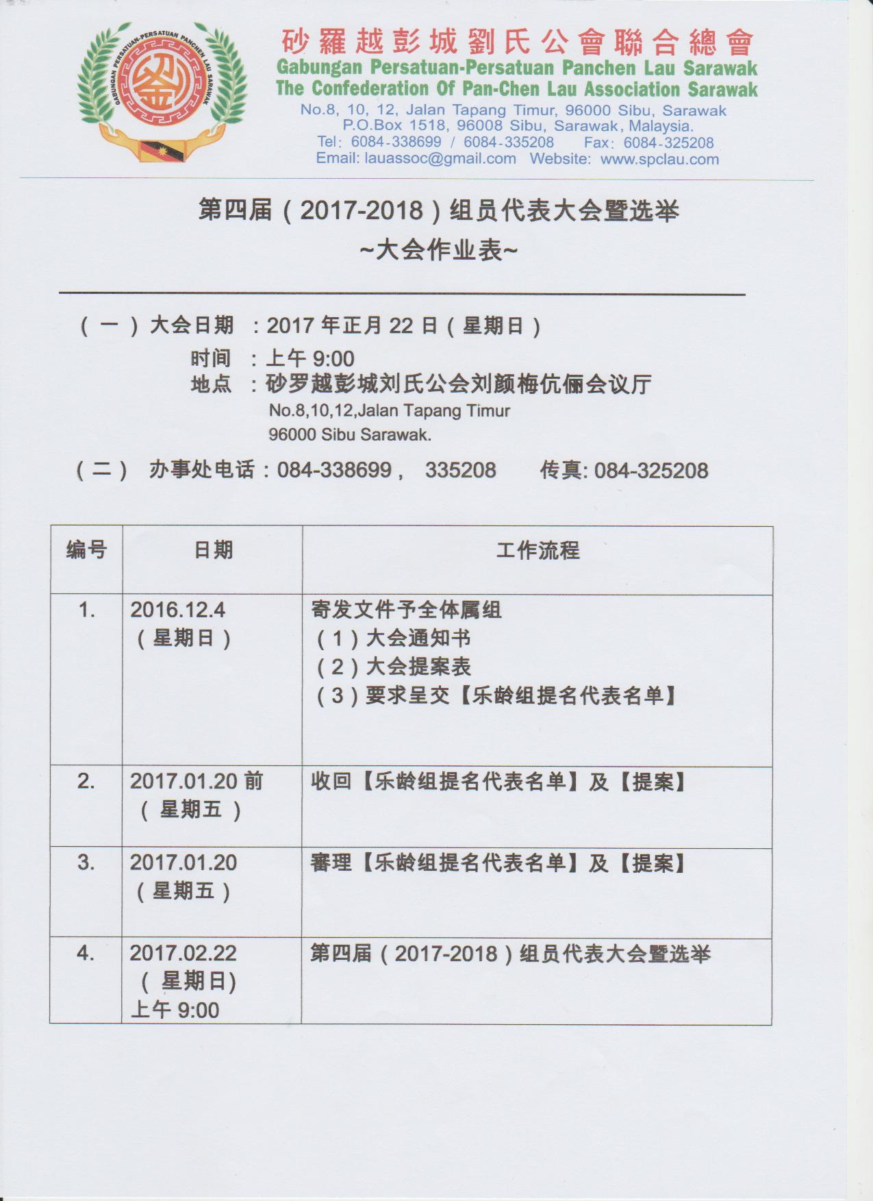 砂罗越彭城刘氏公会联合总会第九届(2017-2018)会员代表大会暨选举、第九届(2017-2018)团员组员代表大会暨选举、第四届(2017-2018)组员代表大会暨选举通知书--22.01.2017 Posted by admin | On 5 12 月,2016 | In 未分類 Related Posts 砂罗越彭城刘氏公会讲演会第151次练习会--7-4-2015 本会名誉顾问,乐龄组及讲演会顾问庆嘉宗长荣膺沙巴州元首敦朱哈马戏鲁丁71岁华诞封赐PGDK拿督勋衔 砂罗越彭城刘氏公会第廿届(2017-2018)常年会员大会暨2018新春联欢会--21-2-2018 About Author admin Leave a Reply發佈留言必須填寫的電子郵件地址不會公開。 必填欄位標示為 *顯示名稱 * 電子郵件地址 * 個人網站網址 在瀏覽器中儲存顯示名稱、電子郵件地址及個人網站網址,以供下次發佈留言時使用。 Δ