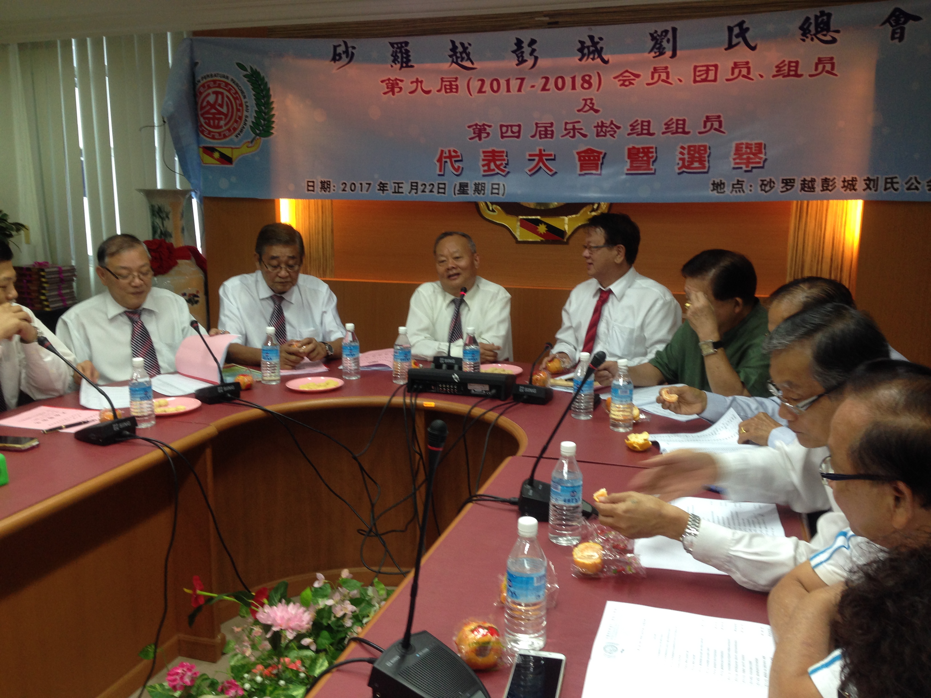 俗语说:宗亲,是血浓于水,同根同族,同文,相聚一起,是最正常的群体。大家正准备,送走猴年,即将迎来鸡年,这是,我们华裔同胞;尤其是,我们刘氏宗亲,在此,举行,砂罗越彭城刘氏公会联合总会第九届理事会选举、第九届青年团团委、妇女组组委及第四届乐龄组组委换届选举。