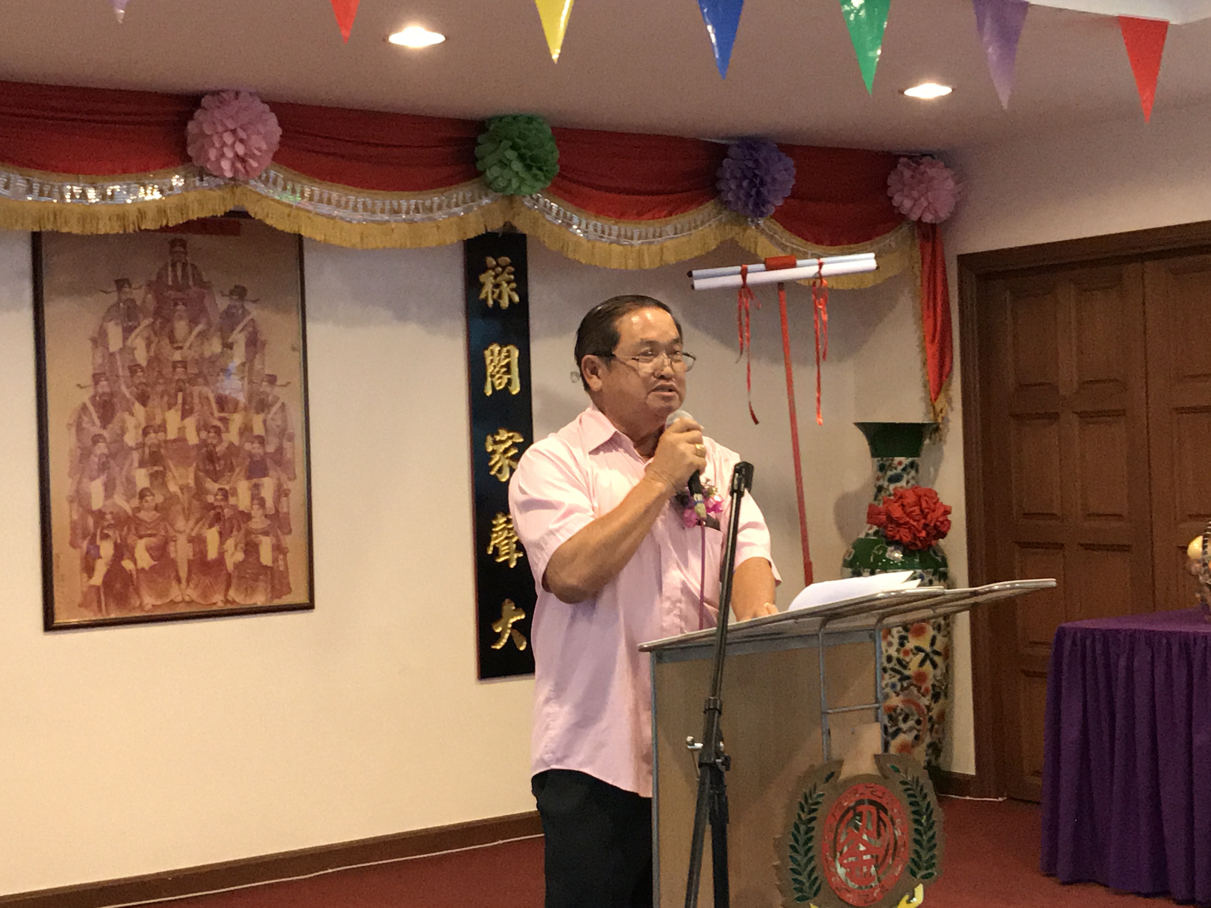 主席伯举宗长在致词时幽默的请大家来参与书法练习课。