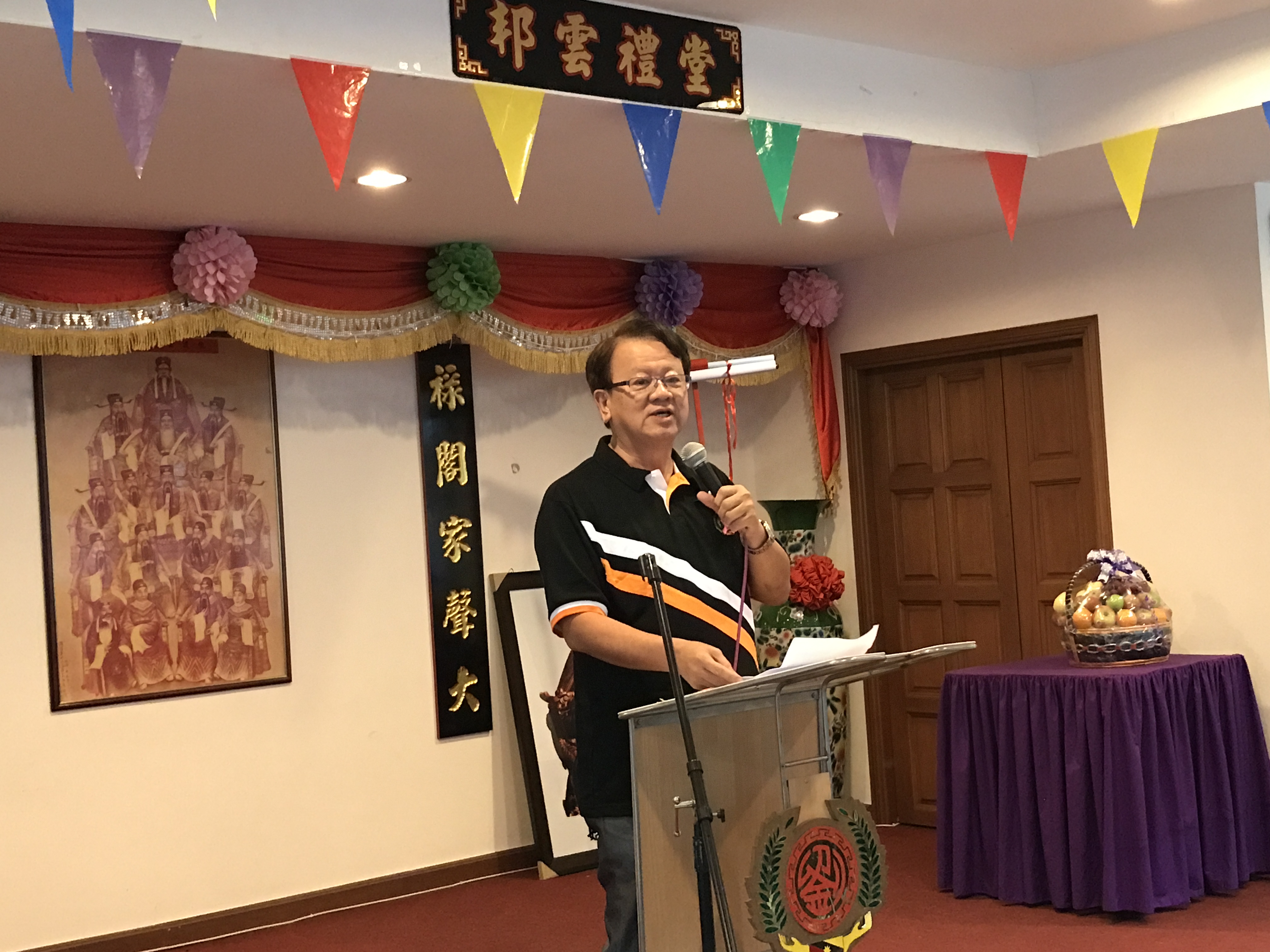 上下图片为文教组主任扬祥宗长赠送水果礼兰予赞助人主席伯举宗长。