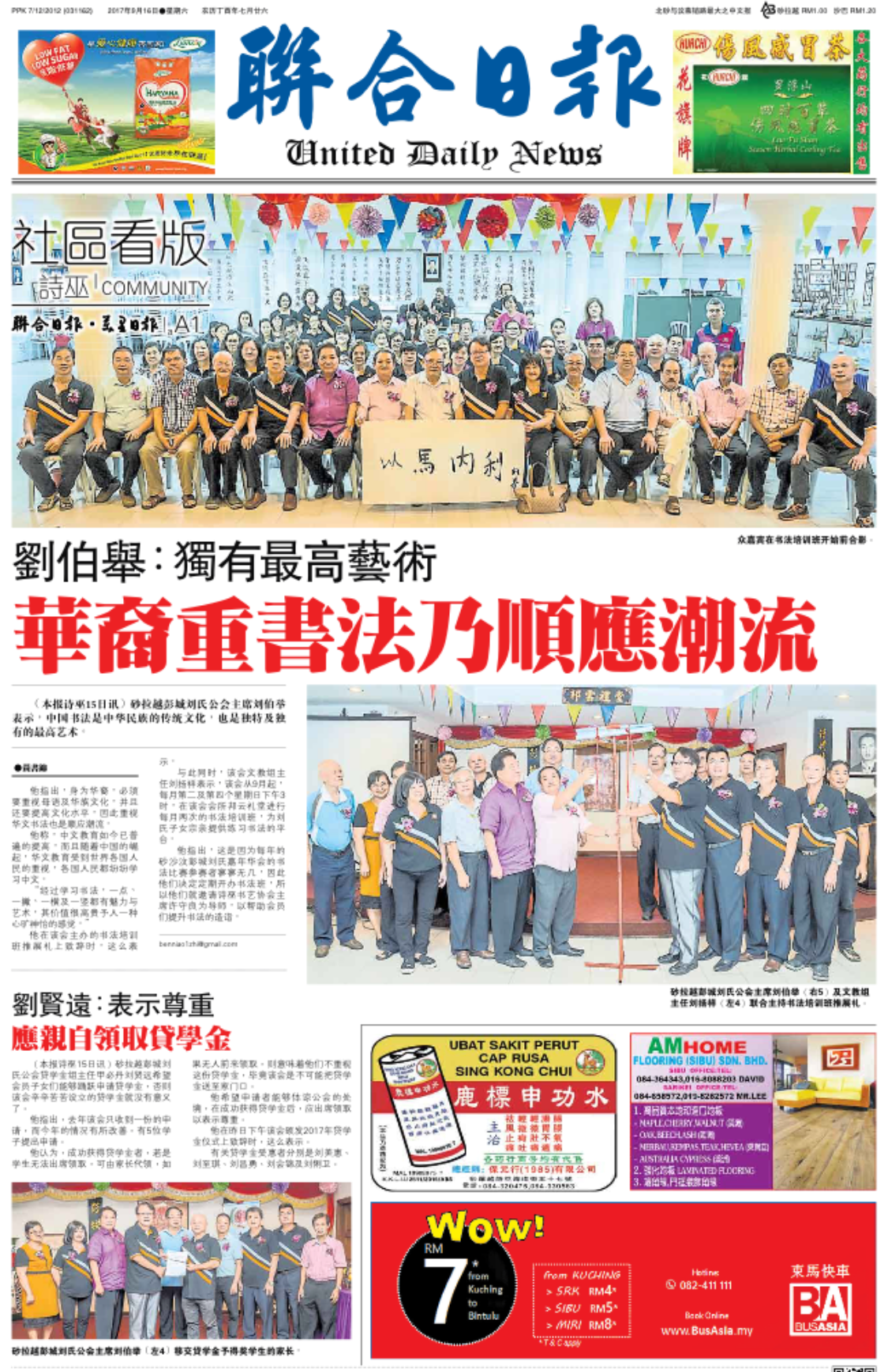 砂罗越彭城刘氏公会书法培训班推展礼暨颁发贷学金予受惠者--10-9-2017