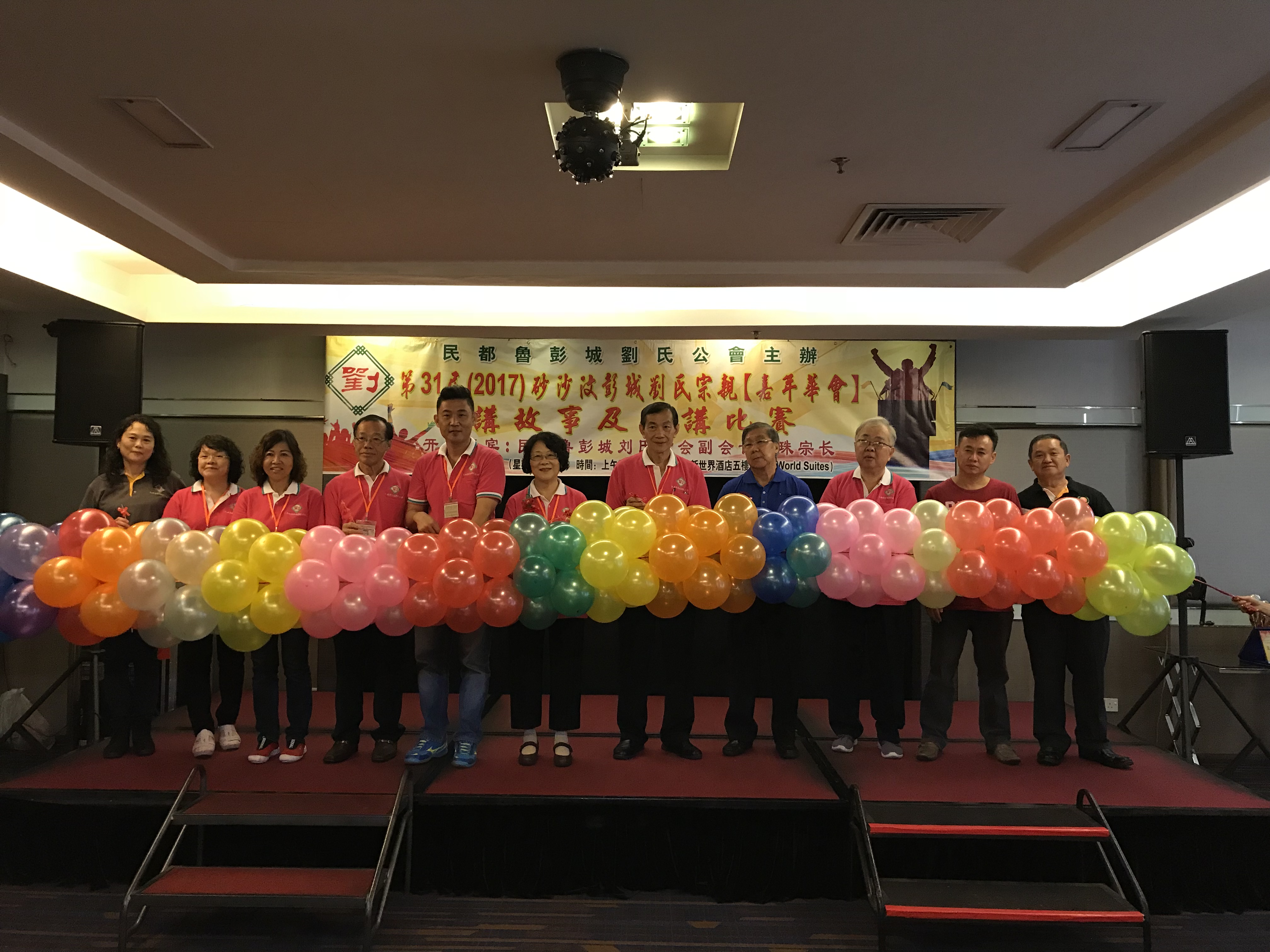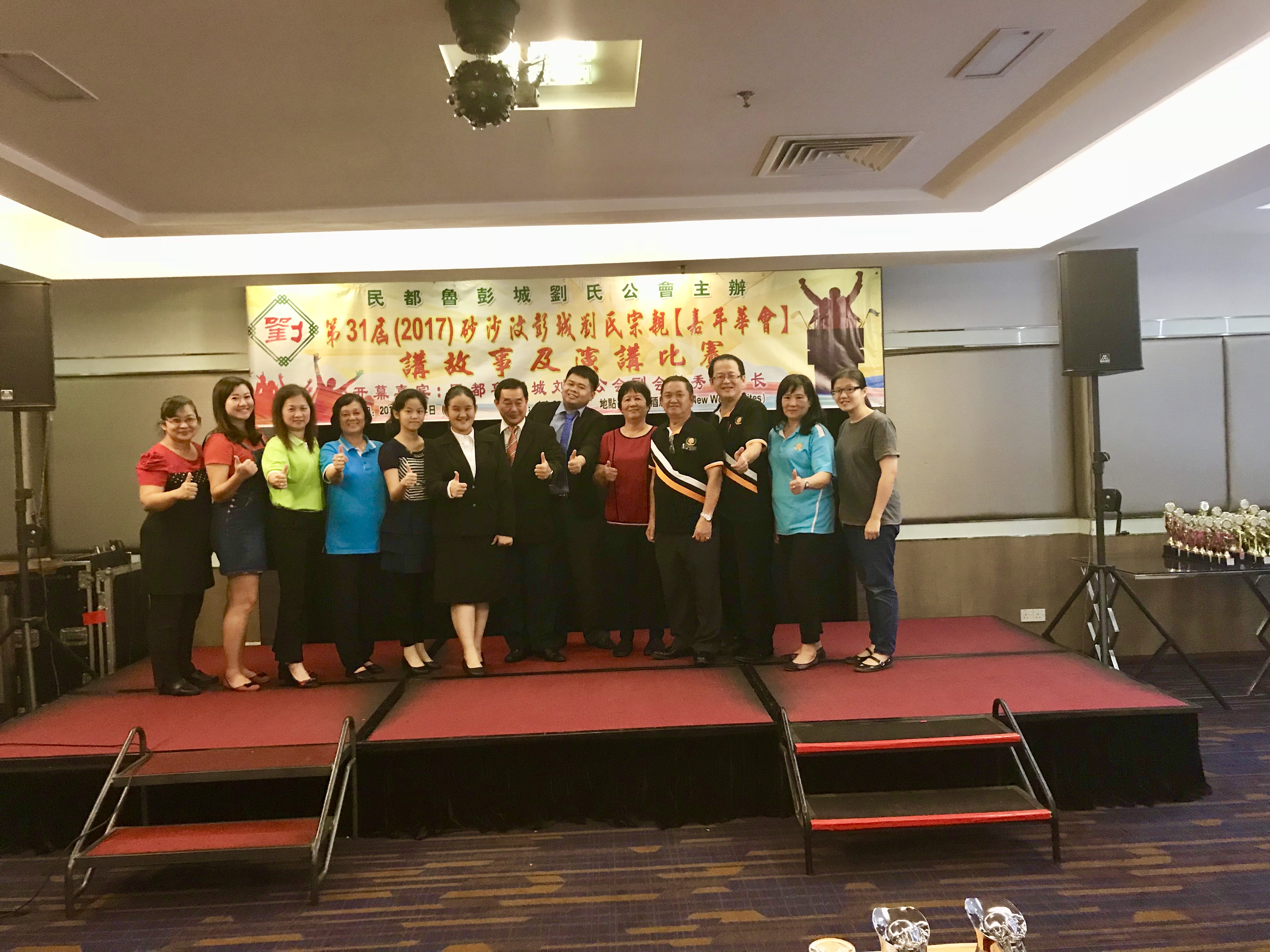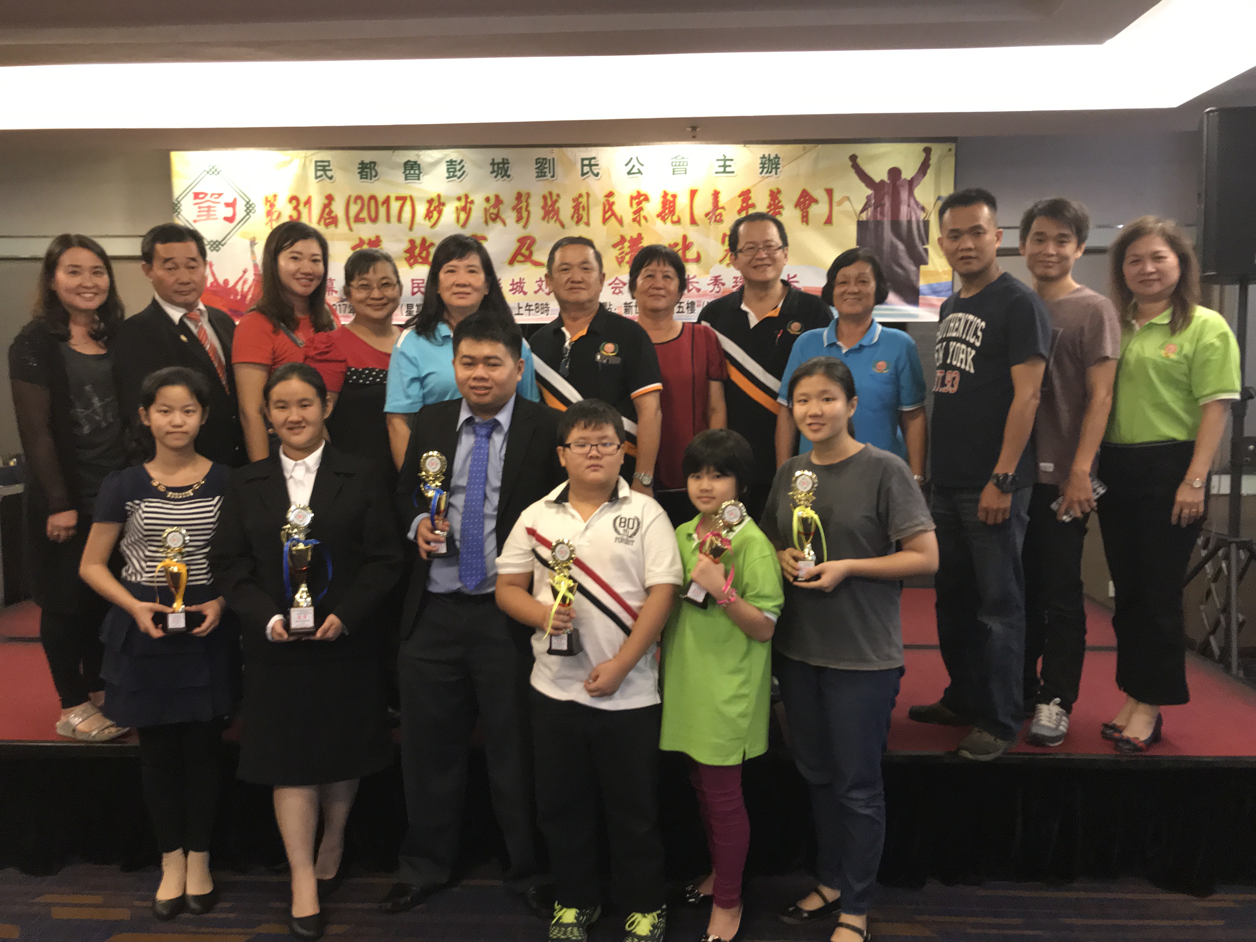 砂罗越彭城刘氏公会参加讲故事及演讲比赛得奖者合影。