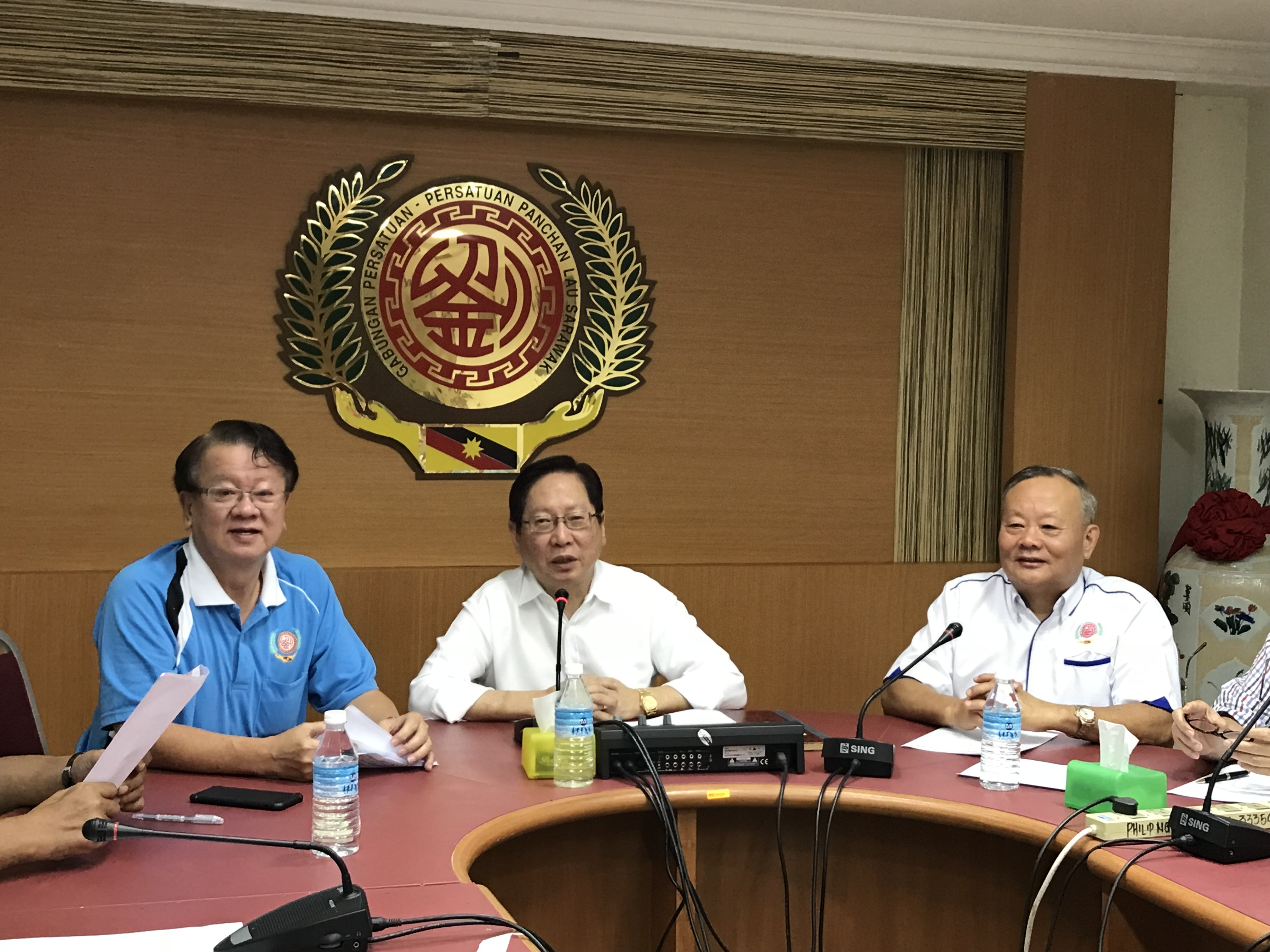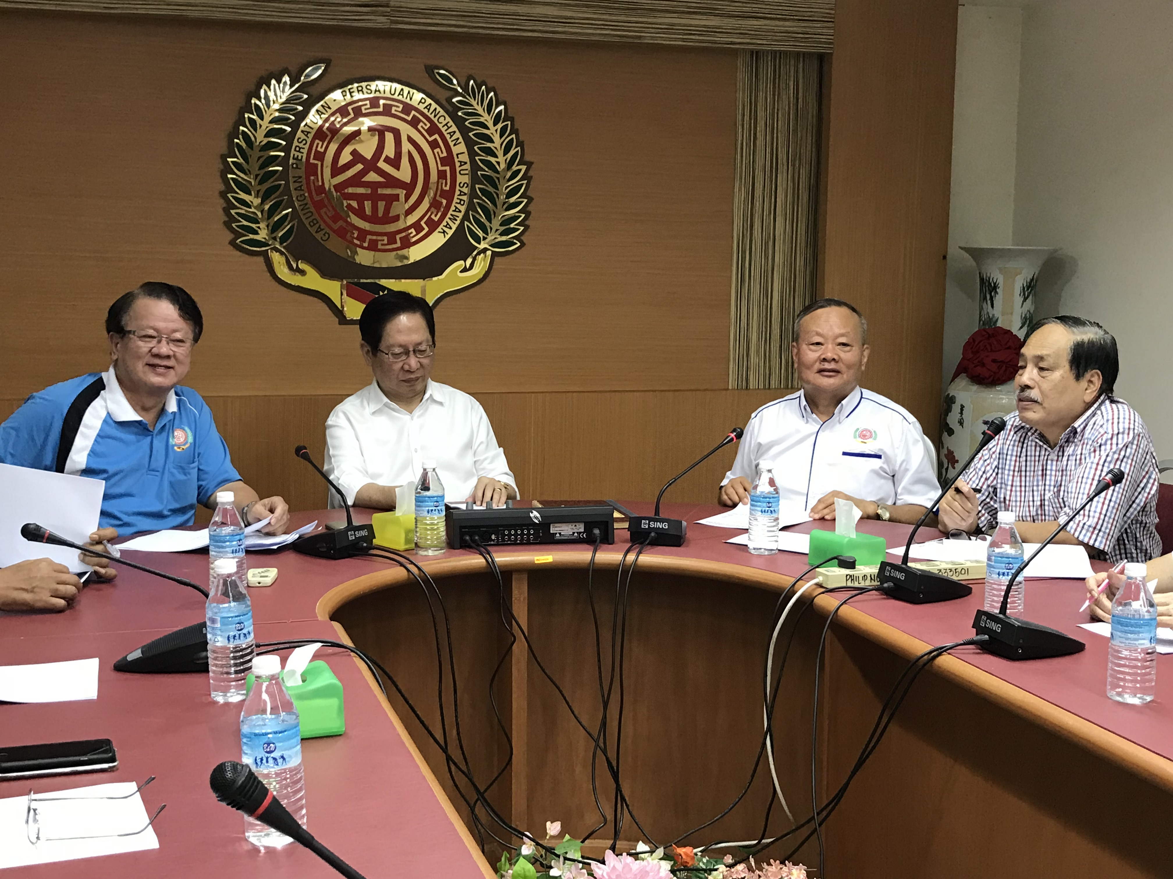 上下图片为会长天猛公拿督利民宗长及砂刘总会长拿督斯里久健宗长主持新闻发布会会议。
