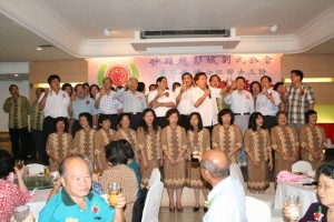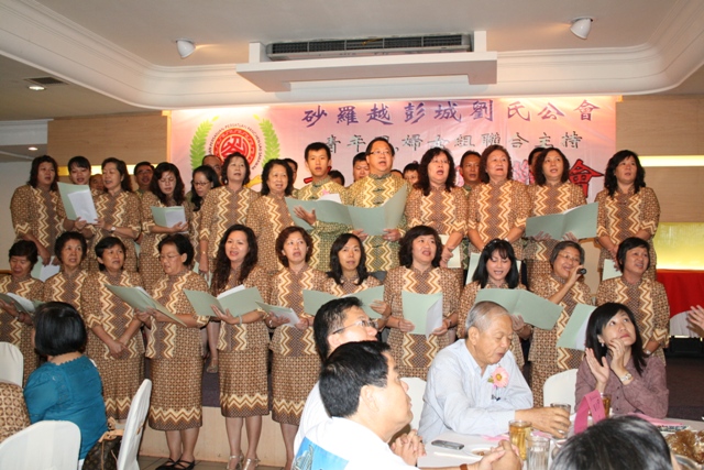 后排左1为本会署理会长刘久生 ,左2乐龄组主任刘人群,左3署理主席刘本武,左4为本会主席拿督刘增强,左5为名誉主席拿督刘贤英 ,左6为名誉会长刘瑞源, 左7为联邦首相署副部长拿督刘伟强局绅, 左8为本会妇女组顾问拿汀斯里黄淑贞,左9为英文秘书刘会耀律师,左10为本会会长天猛公刘利民,左11为本会妇女组主任甲必丹拿汀刘文惠, 左12为刘会耀夫人刘玲 , 左13为本会副主席刘伯举为耆老别上金牌合影.