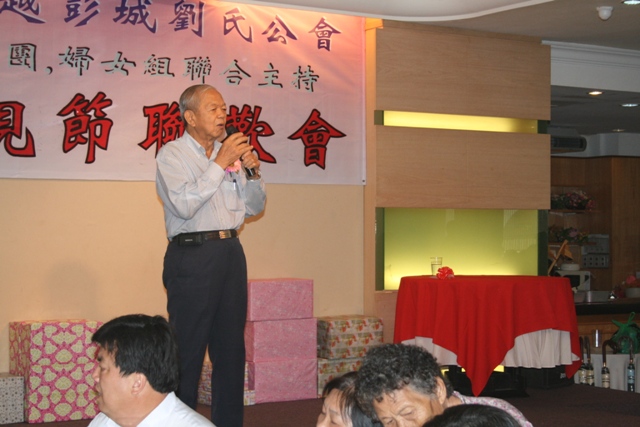 筹委会主席刘缵兴致词时说,作为子女一代,都非常重视关怀自己父母的健康和日常生活。在物质上提供充足,在精神上给予关心,这是做子女应有的孝心,而公开方面,本会做到了一年一度的孝亲节让刘家70岁以上的宗长,相聚在一起举行庆祝会。达到古语说:老吾老以及人之老,幼吾幼以及人之幼,这种博爱精神值得承传。