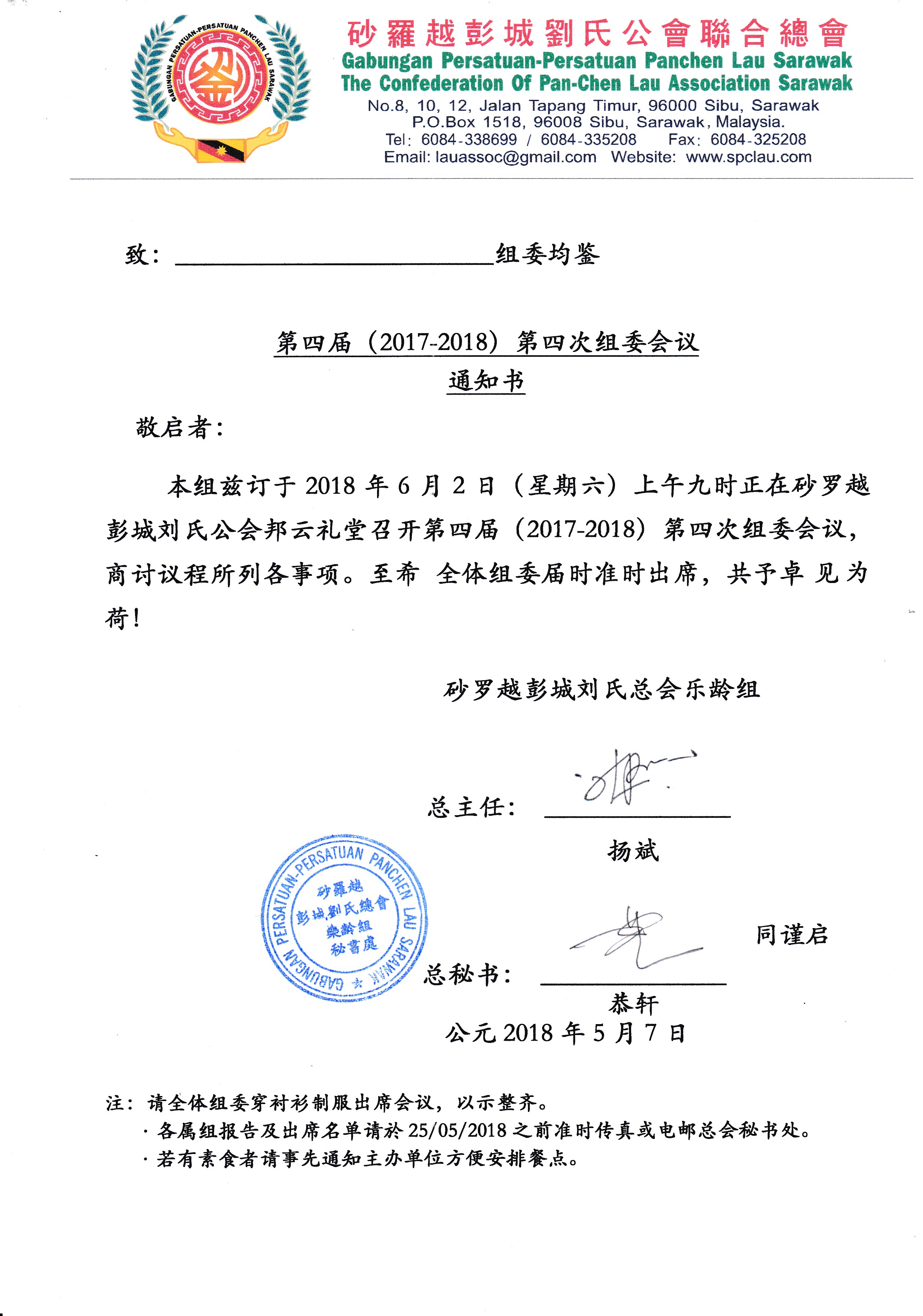 砂刘总会第九届第五次理事会议、青年年团妇女组第四次联席会议及乐龄组第四次会议通知书--2-6-2018 Posted by admin | On 19 5 月,2018 | In 未分類 Related Posts 砂罗越彭城刘氏公会联合总会(2025-2026)第十三届会员,团员,组员及第八届乐龄组组员代表大会暨选举--2-2-2025 诗巫省华团主催·诗巫省华青团主办·砂罗越彭城刘氏公会青年团联办【2024年婆罗洲文化节】-华族文化风采【华族童玩】~丢弹珠比赛--15/08/2024 砂罗越彭城刘氏公会暨砂罗越彭城刘氏公会联合总会创会40.20双禧庆典欢迎晚宴--9-11-2018 About Author admin Leave a Reply發佈留言必須填寫的電子郵件地址不會公開。 必填欄位標示為 *顯示名稱 * 電子郵件地址 * 個人網站網址 在瀏覽器中儲存顯示名稱、電子郵件地址及個人網站網址,以供下次發佈留言時使用。 Δ