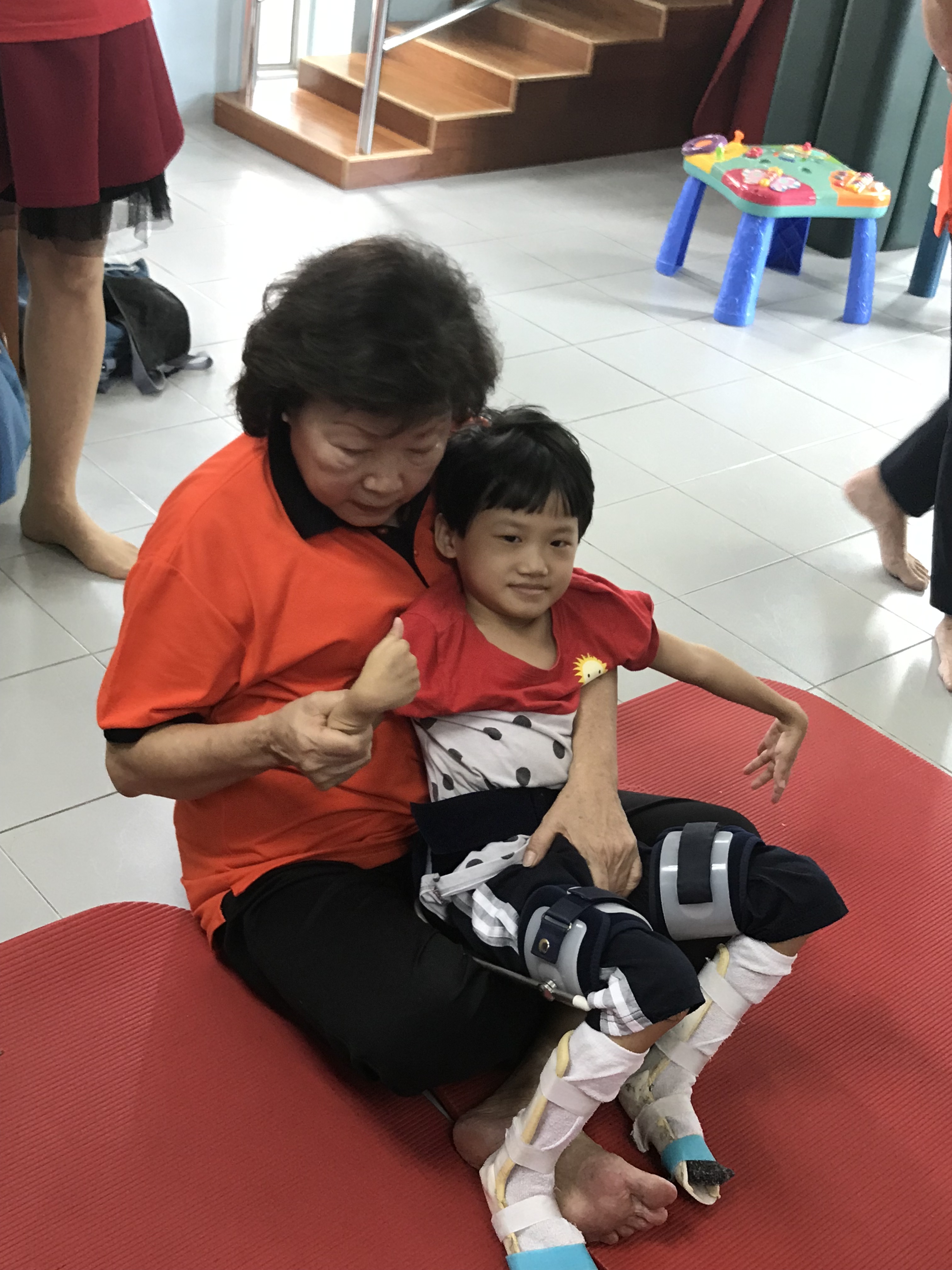 配合华团妇女组主题【关爱社会 关爱自然】由华团妇女组主催.本组主办【献爱心活动】爱之家拜访诗巫特殊儿童协会捐款及探望活动。本组捐款马币2000,主席伯举马币1500及署理会长甲必丹久生马币500共马币四千零吉购买脑瘫儿童的站坐矫形器。