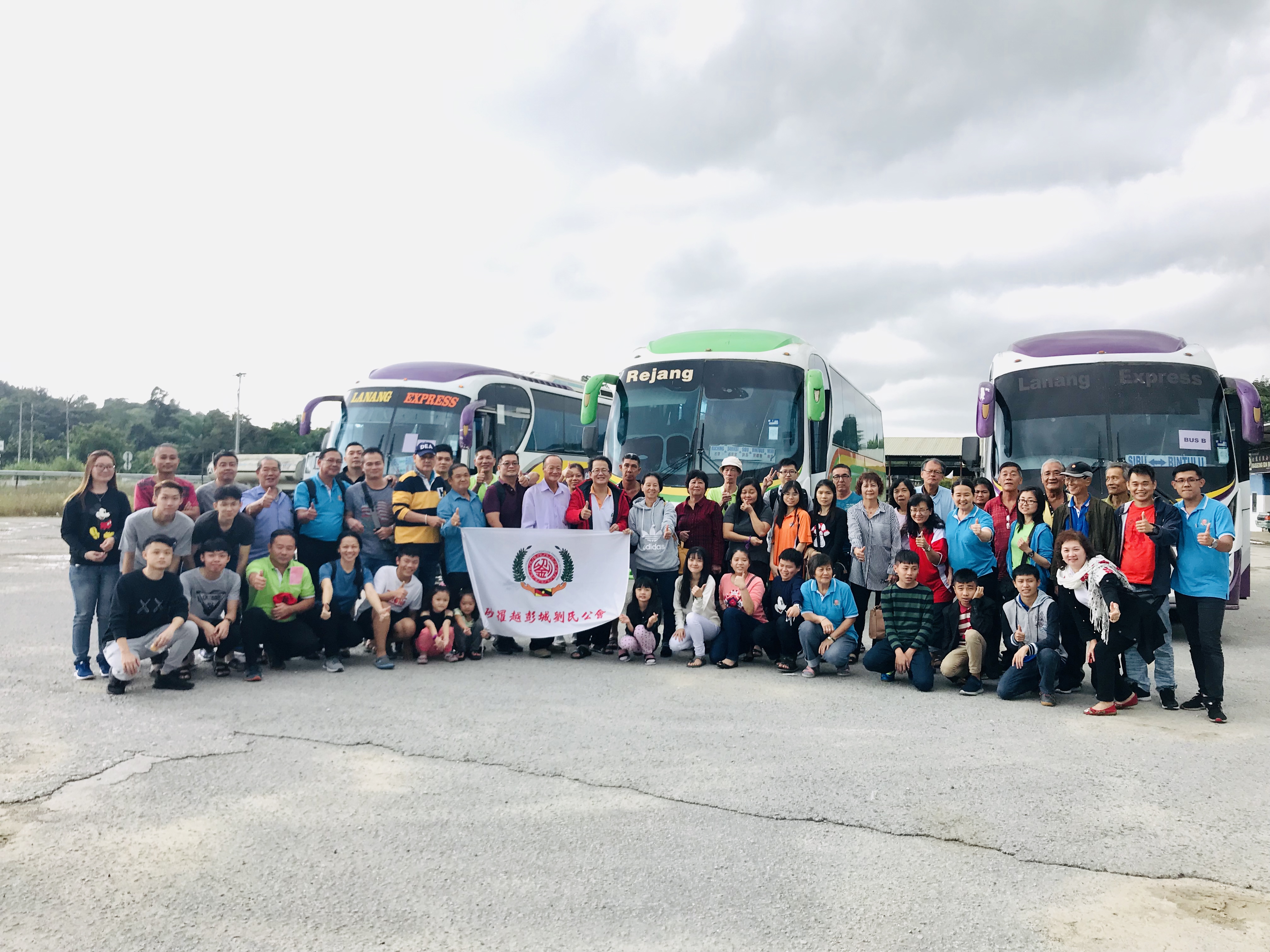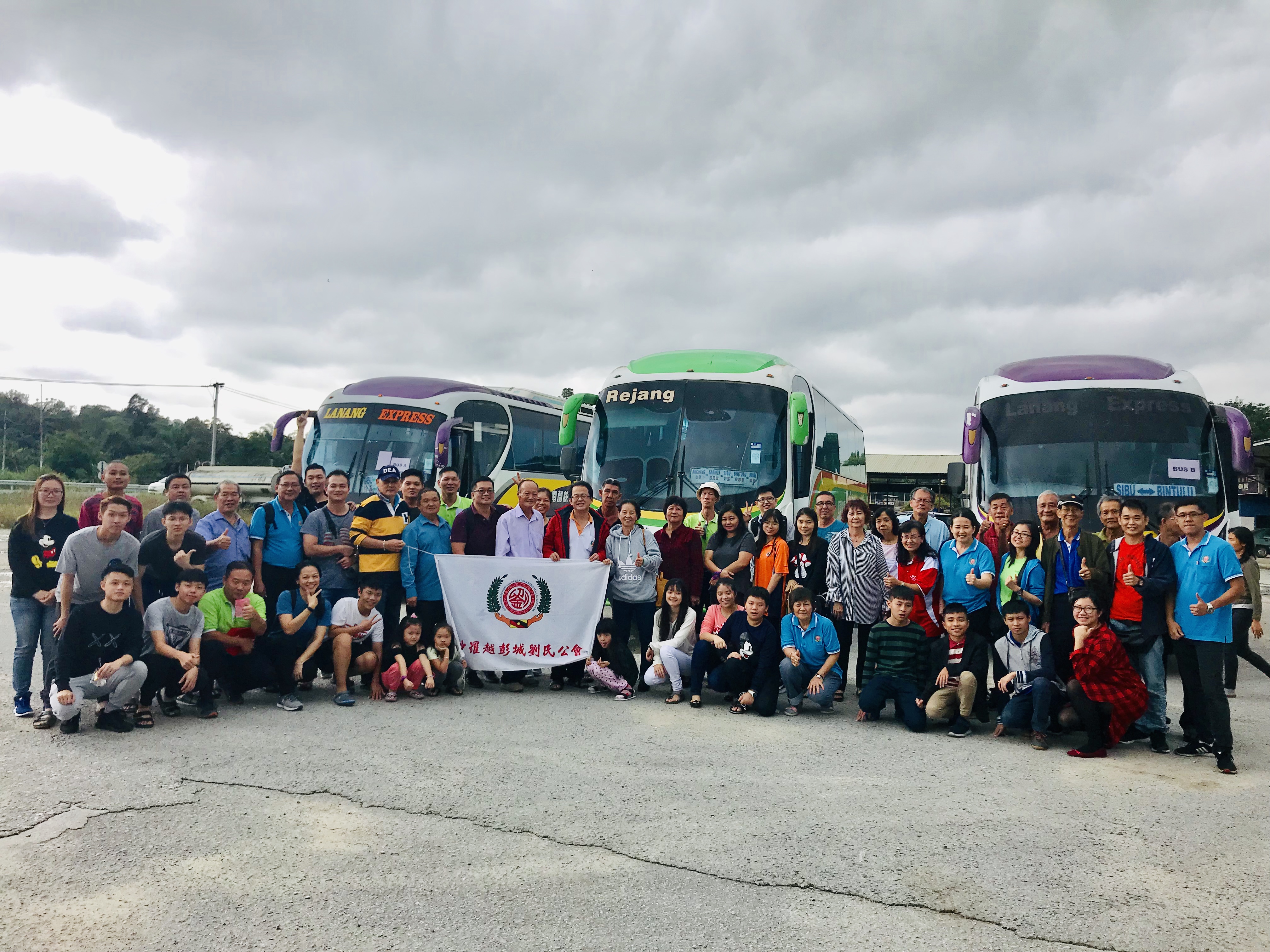 砂罗越彭城刘氏公会派出庞大阵容赴美里参加第33届砂沙汶彭城刘氏宗亲【嘉年华会】,前往美里路途中休息站合影留念。