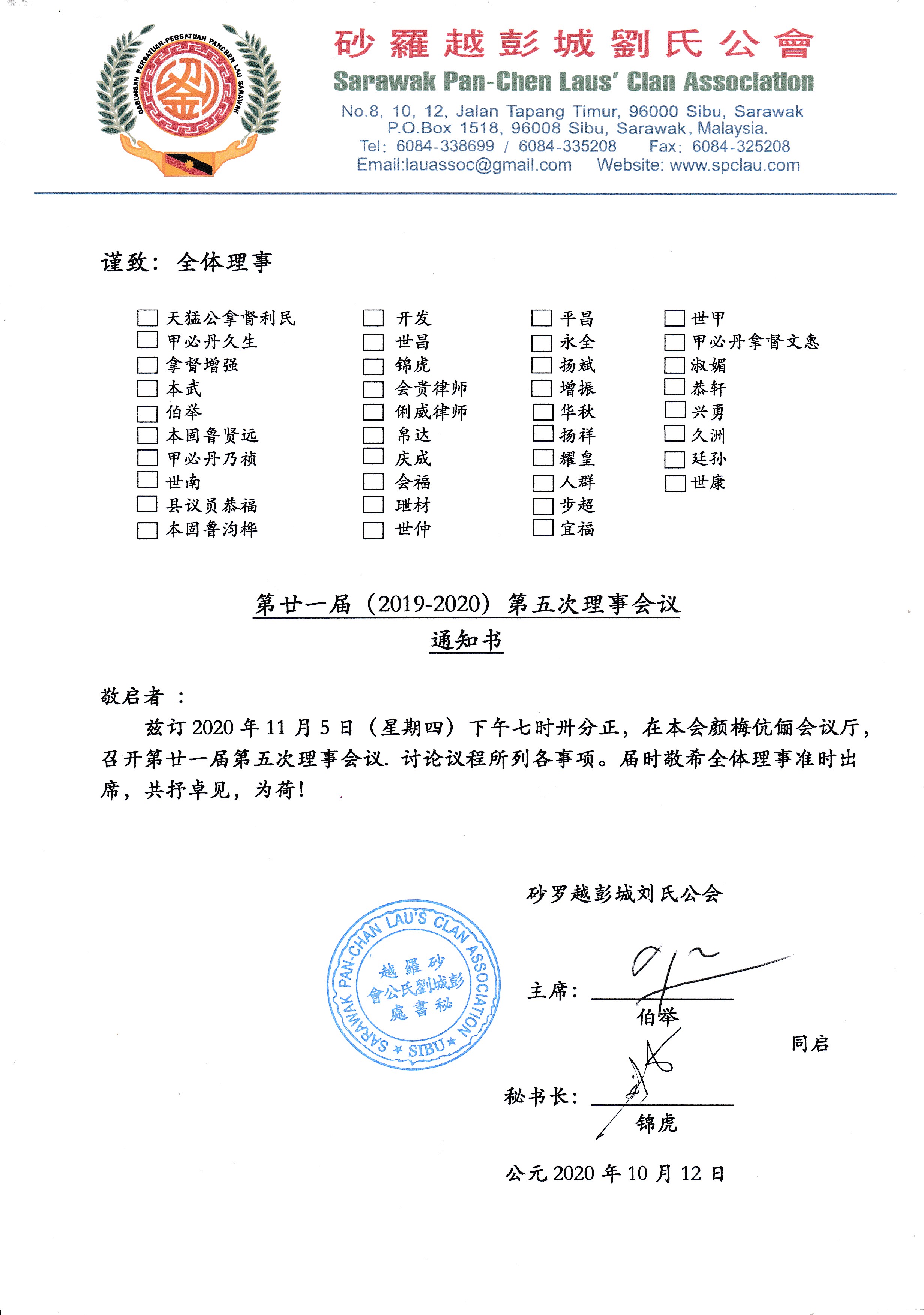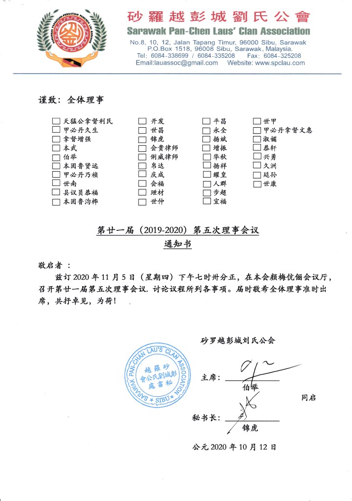 第廿一届(2019-2020)第五次理事会议通知书-05.11.2020 Posted by spclau spclau | On 22 10 月,2020 | In 未分類 Related Posts 砂罗越彭城刘氏公会第廿三届第四次理事会议通知书--16-4-2024 砂罗越彭城刘氏公会---会史简介 砂罗越彭城刘氏公会第三十一届砂沙汶彭城刘氏宗亲【嘉年华会】讲故事及演讲选拔赛--19-8-2017 About Author spclau Leave a Reply發佈留言必須填寫的電子郵件地址不會公開。 必填欄位標示為 *顯示名稱 * 電子郵件地址 * 個人網站網址 在瀏覽器中儲存顯示名稱、電子郵件地址及個人網站網址,以供下次發佈留言時使用。 Δ