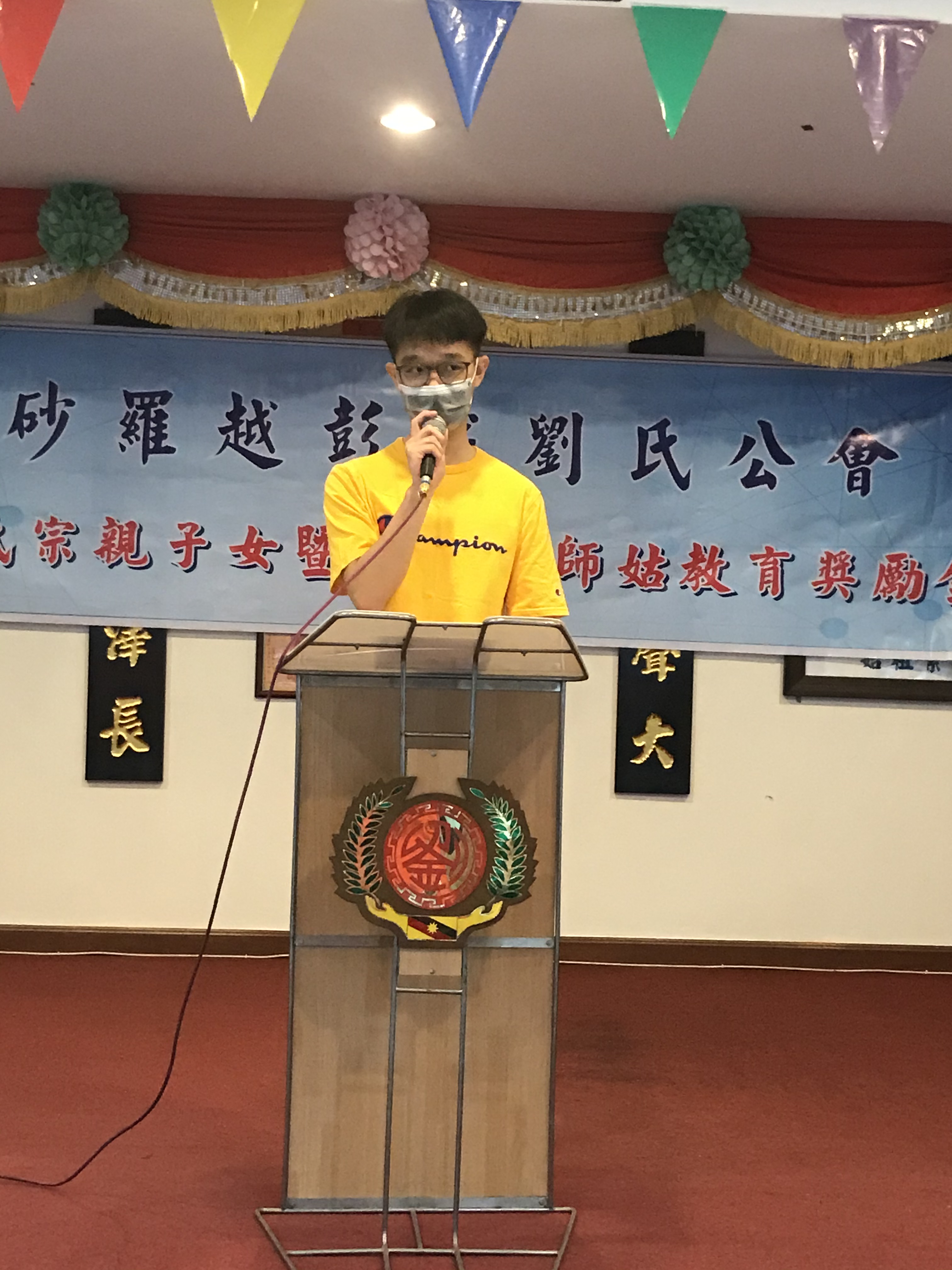 我相信有了长辈们的鼓励,未来在社会的各个岗位上,都会有我们辛勤而又忙碌的身影,展现出不屈不挠的精神。2020年无可否认是非常特殊的一年,一场突如其来的疫情完全打乱了我们的生活方针。即使疫情阻挡了我们的正常生活行程,但却无法阻挡刘氏公会长辈们对我们的关爱。最后,我再次向全体赞助人致以万二分的谢意,也祝愿全体获奖者在接下来漫长的日子里能够继续努力,榜上有名,继续传承刘氏一家亲的优良美德。谢谢。唐代刘禹锡在《浪淘沙》中的诗句:千淘万漉虽辛苦,吹尽狂沙始到金,与大家共勉之。谢谢。