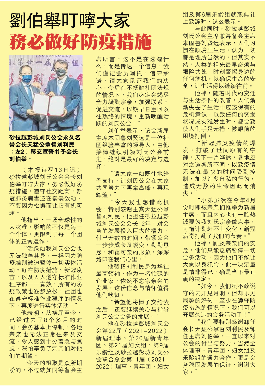 砂罗越彭城刘氏公会与砂罗越彭城刘氏公会联合总会新届【就职典礼】简报要闻--13-12-2021 Posted by admin | On 18 12 月,2021 | In 未分類 Related Posts 砂罗越彭城刘氏公会主办第36届砂沙汶彭城刘氏宗亲【嘉年华会】-26-28/12/2024 【通告】砂罗越彭城刘氏公会讲演会第五届理事就职典礼晚宴程序表--14/8/2011 第三届【马来西亚刘氏宗亲常识比赛】暨第九届【砂罗越彭城刘氏宗亲常识比赛】--18-9-2011 About Author admin Leave a Reply發佈留言必須填寫的電子郵件地址不會公開。 必填欄位標示為 *顯示名稱 * 電子郵件地址 * 個人網站網址 在瀏覽器中儲存顯示名稱、電子郵件地址及個人網站網址,以供下次發佈留言時使用。 Δ