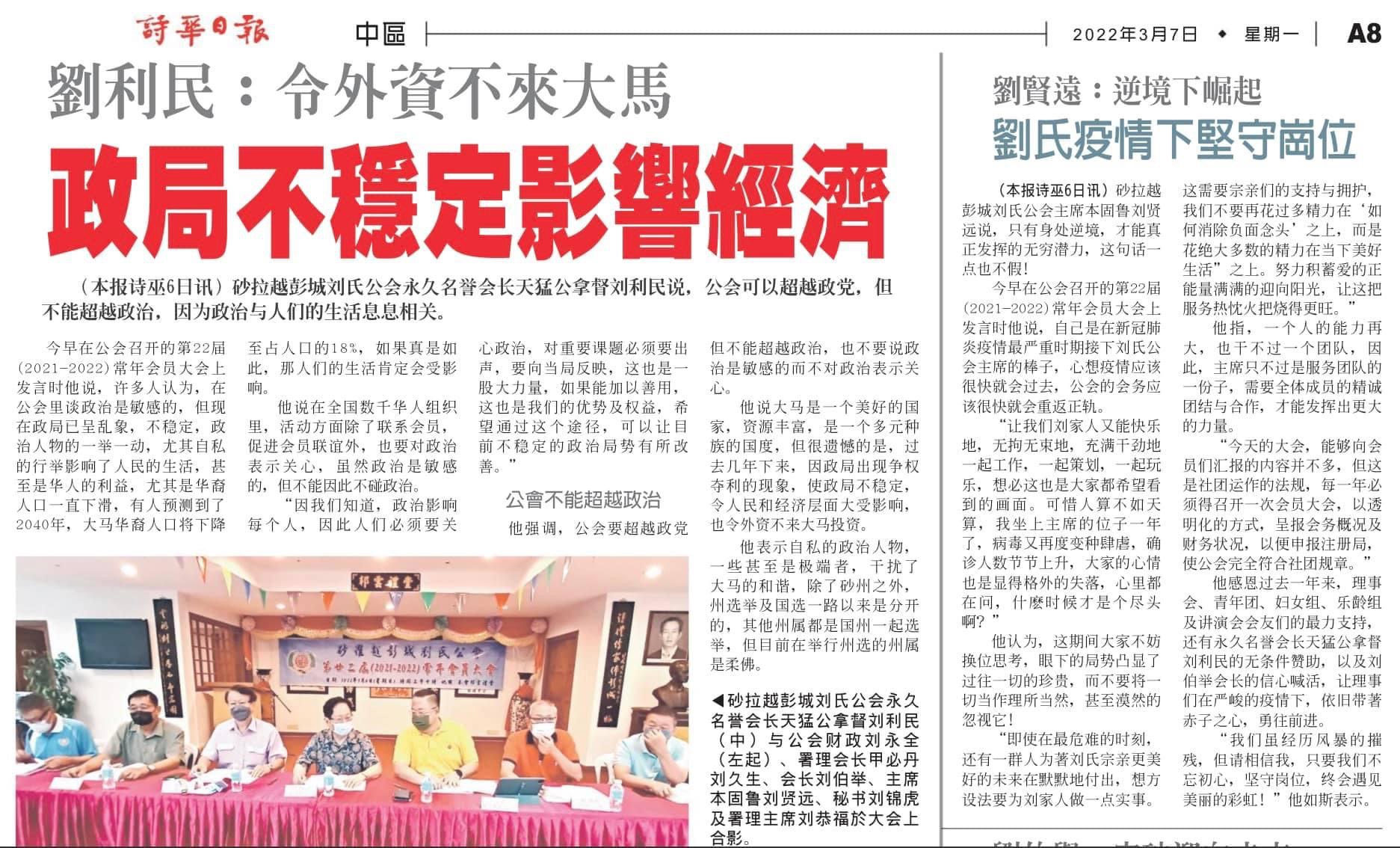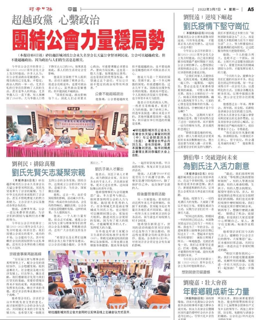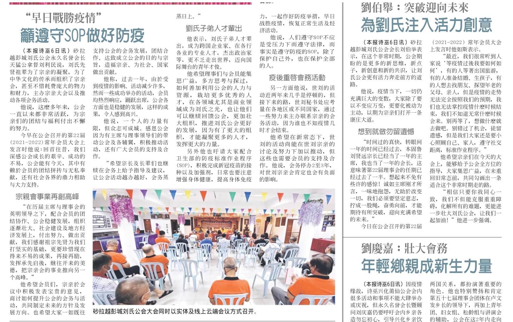 砂罗越彭城刘氏公会第廿二届(2021-2022)常年会员大会--6-3-2022