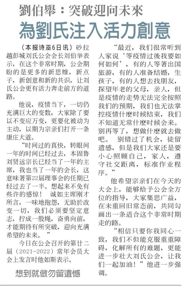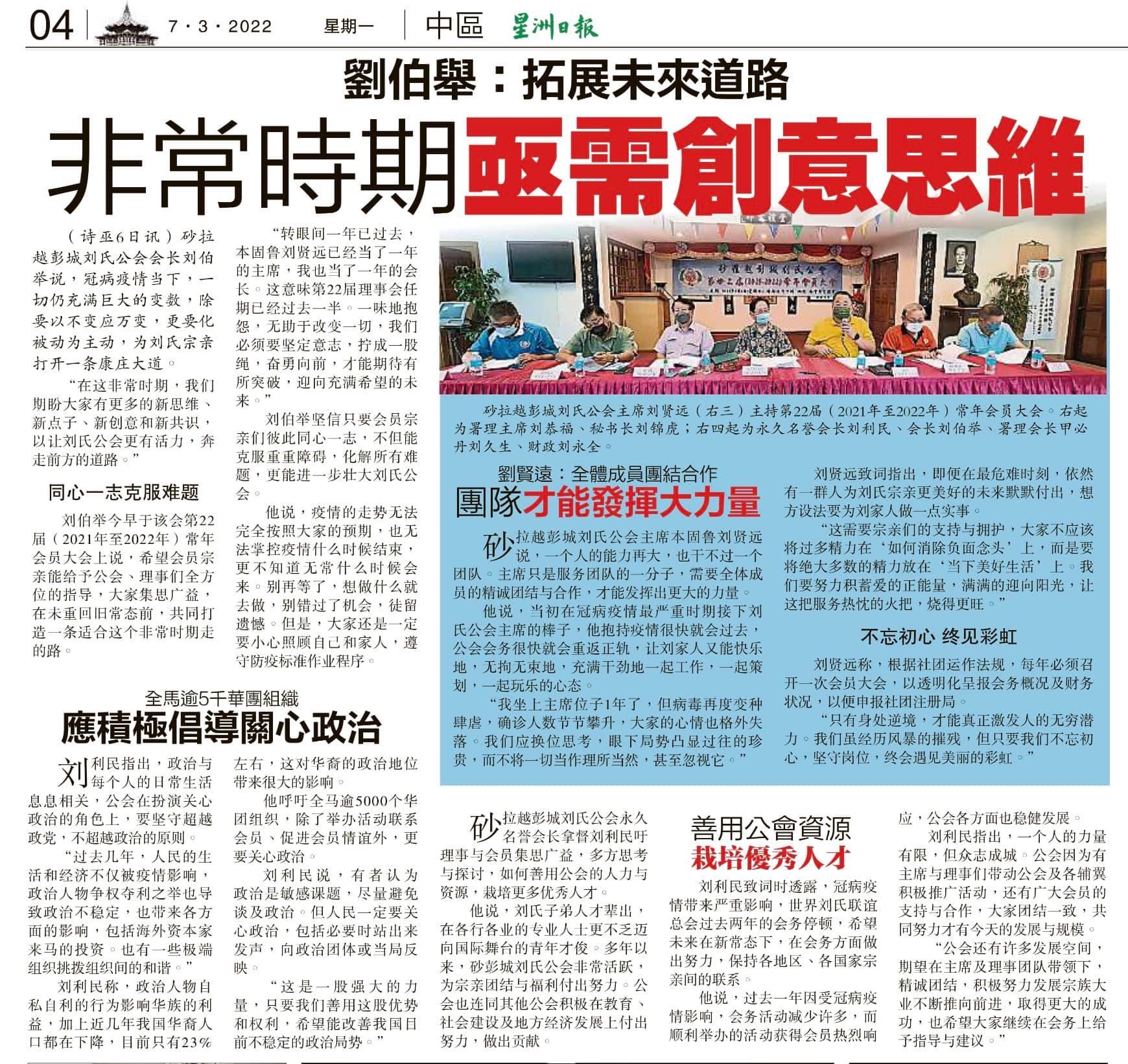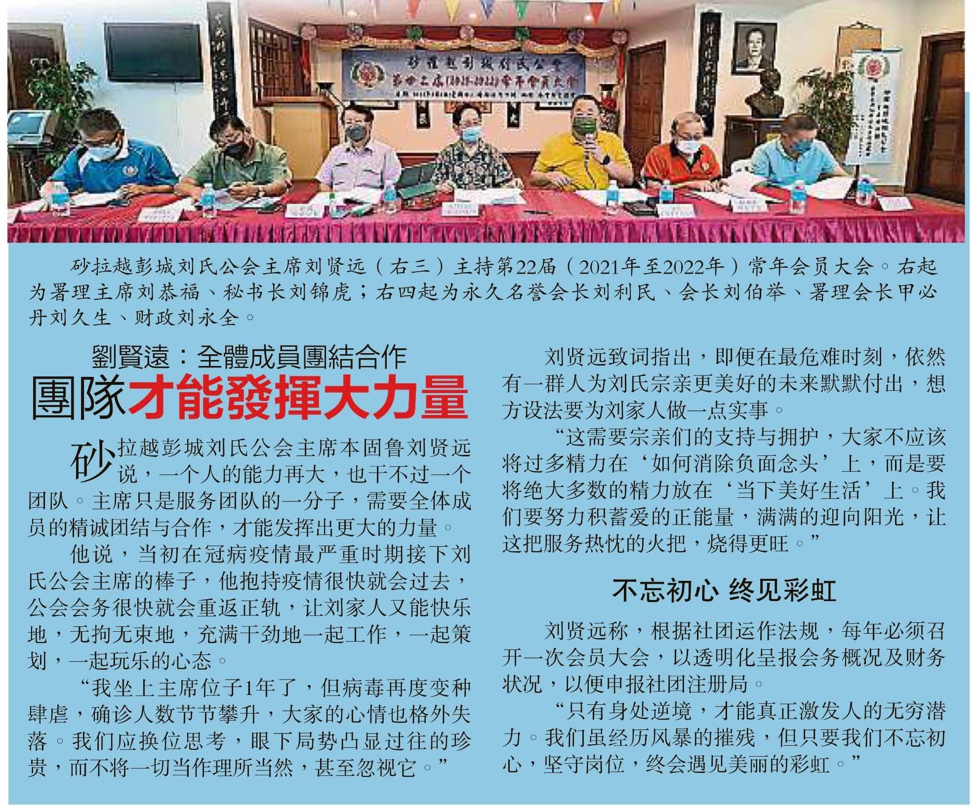 砂罗越彭城刘氏公会第廿二届(2021-2022)常年会员大会--6-3-2022