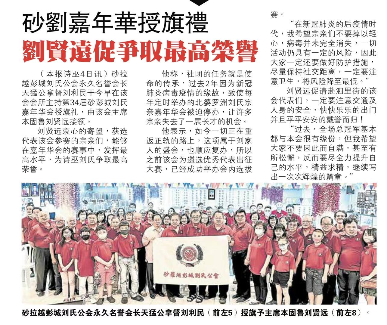 砂罗越彭城刘氏公会第34届砂沙汶彭城刘氏宗亲【嘉年华会】授旗礼--4-12-2022