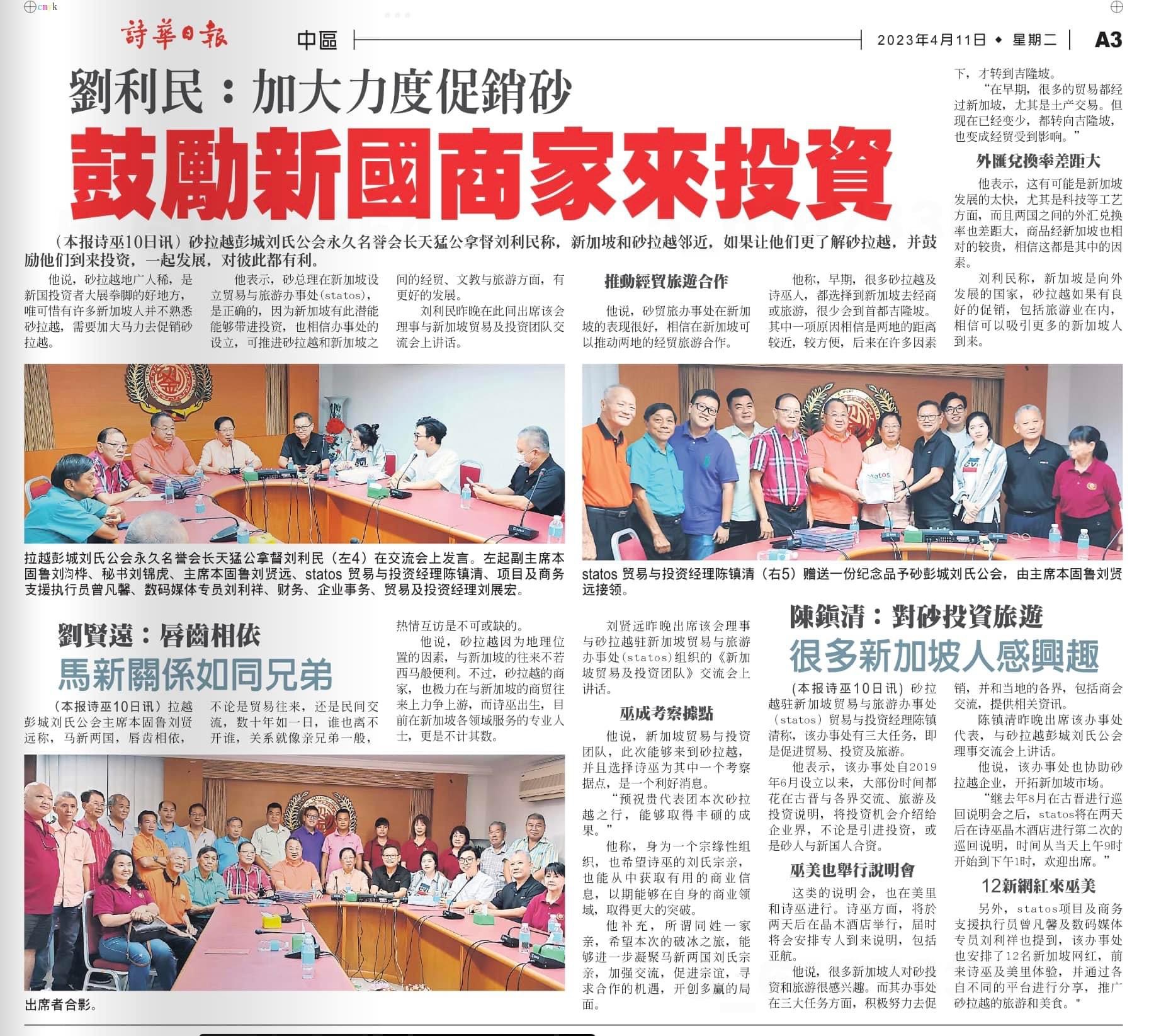 砂罗越彭城刘氏公会与砂拉越贸易与旅游驻新加坡办事处(STATOS)团队成员交流会--09.04.2023