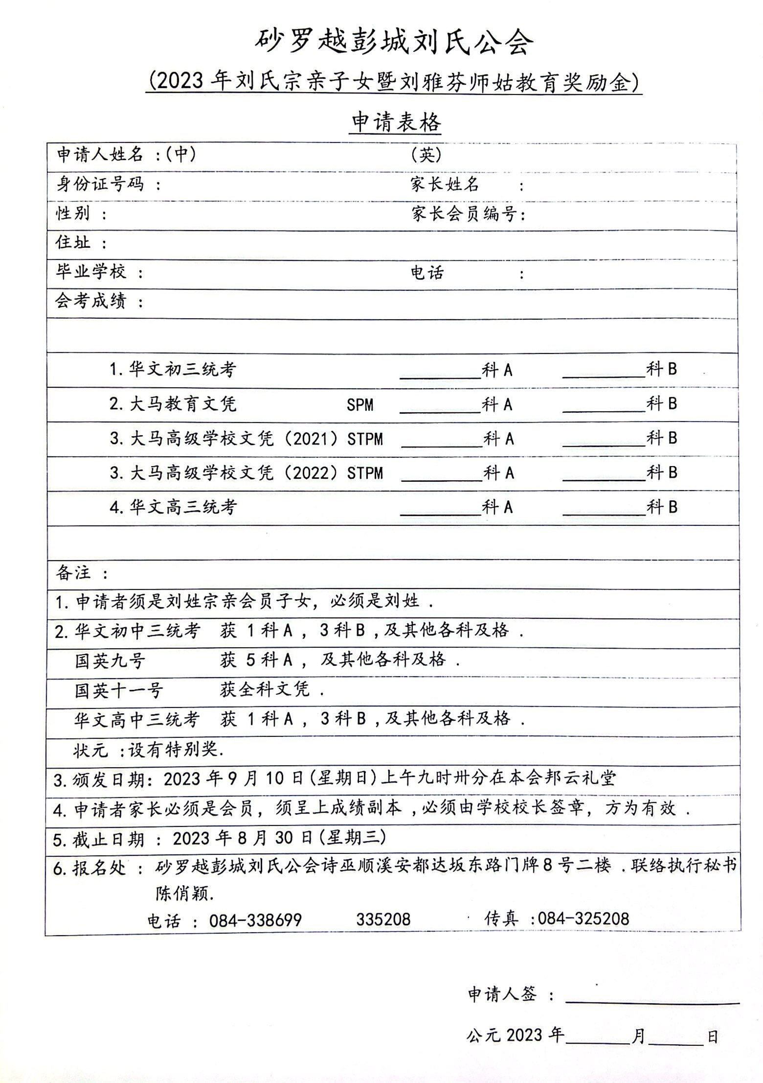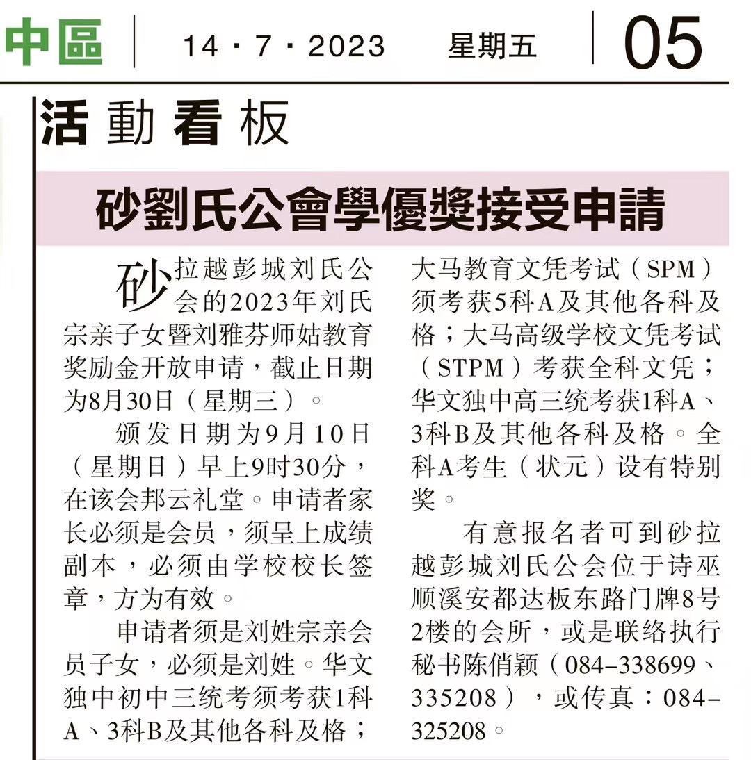 砂罗越彭城刘氏公会 (2023年刘氏宗亲子女暨刘雅芬师姑教育奖励金) 接受申请--10.09.2023 Posted by spclauadmin | On 25 7 月,2023 | In 未分類 Related Posts 砂罗越彭城刘氏公会讲演会第88次练习会--15-7-2012 世界刘氏联谊总会办事处--13-12-2011 第24届砂沙汶彭城刘氏宗亲[嘉年华会]移交奖杯仪式-15/1/2011 About Author spclauadmin Leave a Reply發佈留言必須填寫的電子郵件地址不會公開。 必填欄位標示為 *顯示名稱 * 電子郵件地址 * 個人網站網址 在瀏覽器中儲存顯示名稱、電子郵件地址及個人網站網址,以供下次發佈留言時使用。 Δ
