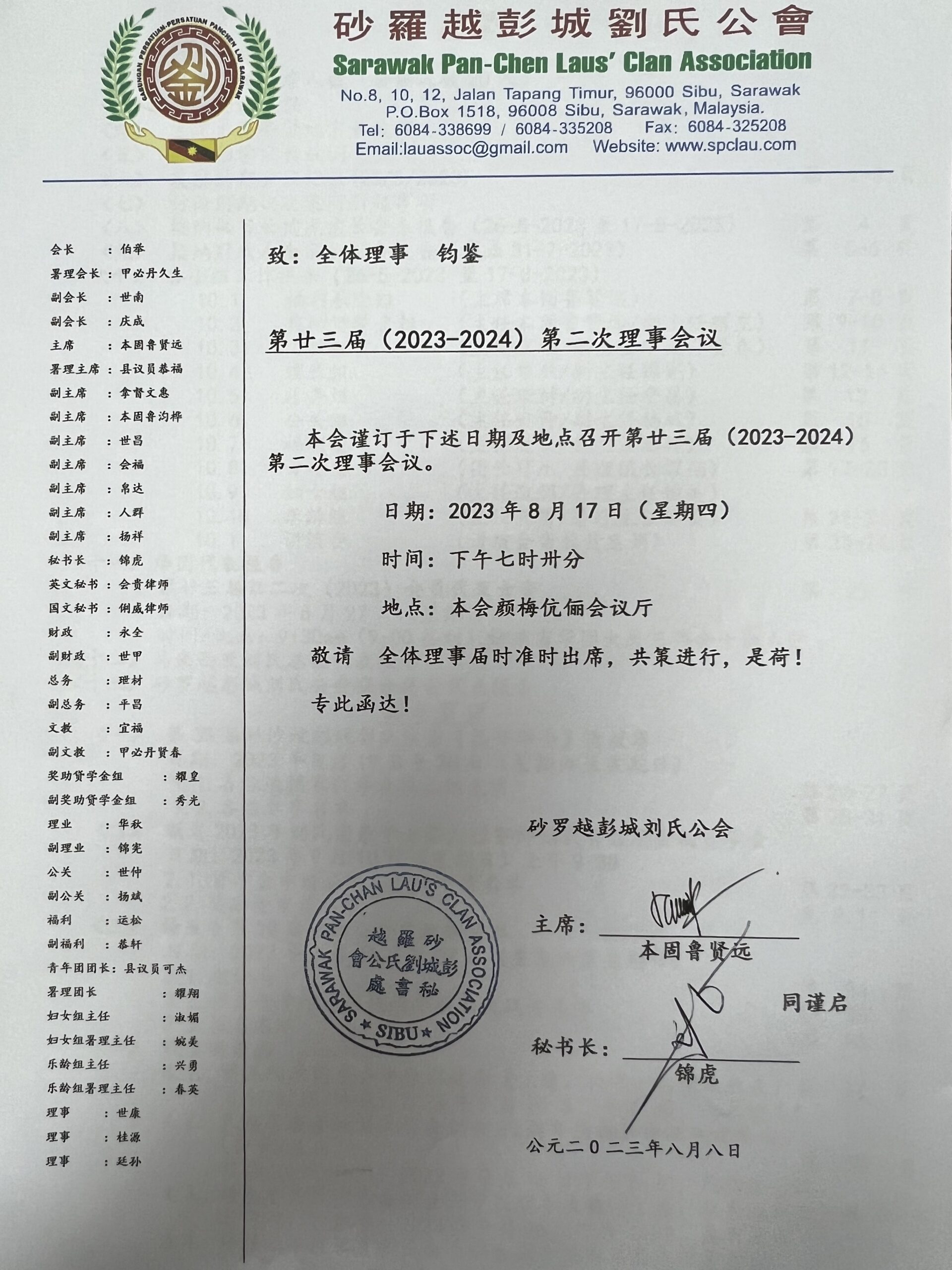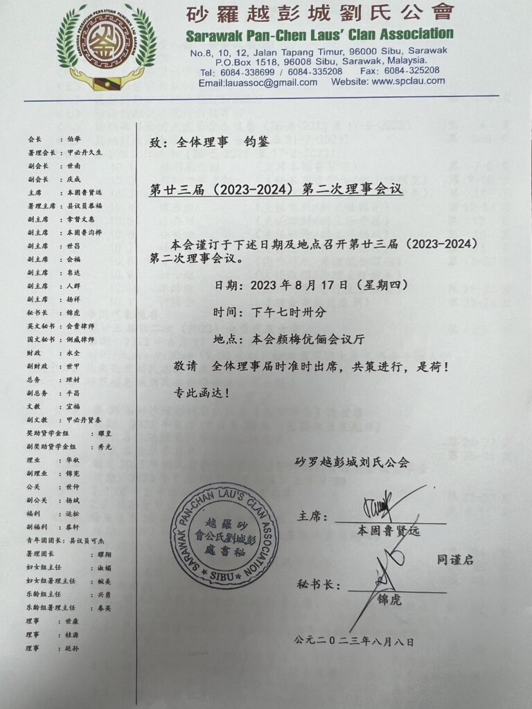 砂罗越彭城刘氏公会第廿三届第二次理事通知书--17-8-2023 Posted by admin | On 17 8 月,2023 | In 未分類 Related Posts 【通告】砂罗越彭城刘氏公会青年团妇女组联合主办2014年孝亲节--04-05-2014 砂罗越彭城刘氏公会第十七届(2011-2012)理事提名名单-15/1/2011 砂罗越彭城刘氏总会乐龄组与森美兰刘氏公会交流会--21.06.2014 About Author admin Leave a Reply發佈留言必須填寫的電子郵件地址不會公開。 必填欄位標示為 *顯示名稱 * 電子郵件地址 * 個人網站網址 在瀏覽器中儲存顯示名稱、電子郵件地址及個人網站網址,以供下次發佈留言時使用。 Δ