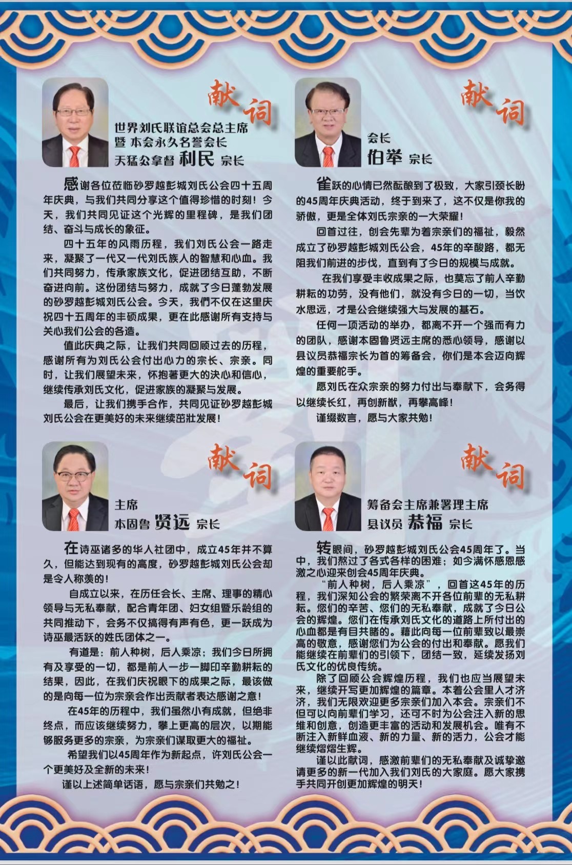 砂罗越彭城刘氏公会创会45周年纪念庆典特辑--17-12-2023 Posted by admin | On 17 12 月,2023 | In 未分類 Related Posts 【通告】马来西亚刘氏总会青年团妇女组联合主催。雪隆刘氏公会青年团妇女组联合主办。砂罗越彭城刘氏公会青年团妇女组联合协办。第六届【马来西亚刘氏宗亲常识比赛暨第十二届砂罗越彭城刘氏联合总会常识比赛】--28.09.2014--星期日 【通告】砂罗越彭城刘氏公会联合总会第七届(2013-2014)理事、青年团、妇女组及乐龄组提名及召开会员、团员、组员及乐龄组执委代表大会暨选举--17-3-2013 第廿一届(2019-2020)第五次理事会议通知书-05.11.2020 About Author admin Leave a Reply發佈留言必須填寫的電子郵件地址不會公開。 必填欄位標示為 *顯示名稱 * 電子郵件地址 * 個人網站網址 在瀏覽器中儲存顯示名稱、電子郵件地址及個人網站網址,以供下次發佈留言時使用。 Δ
