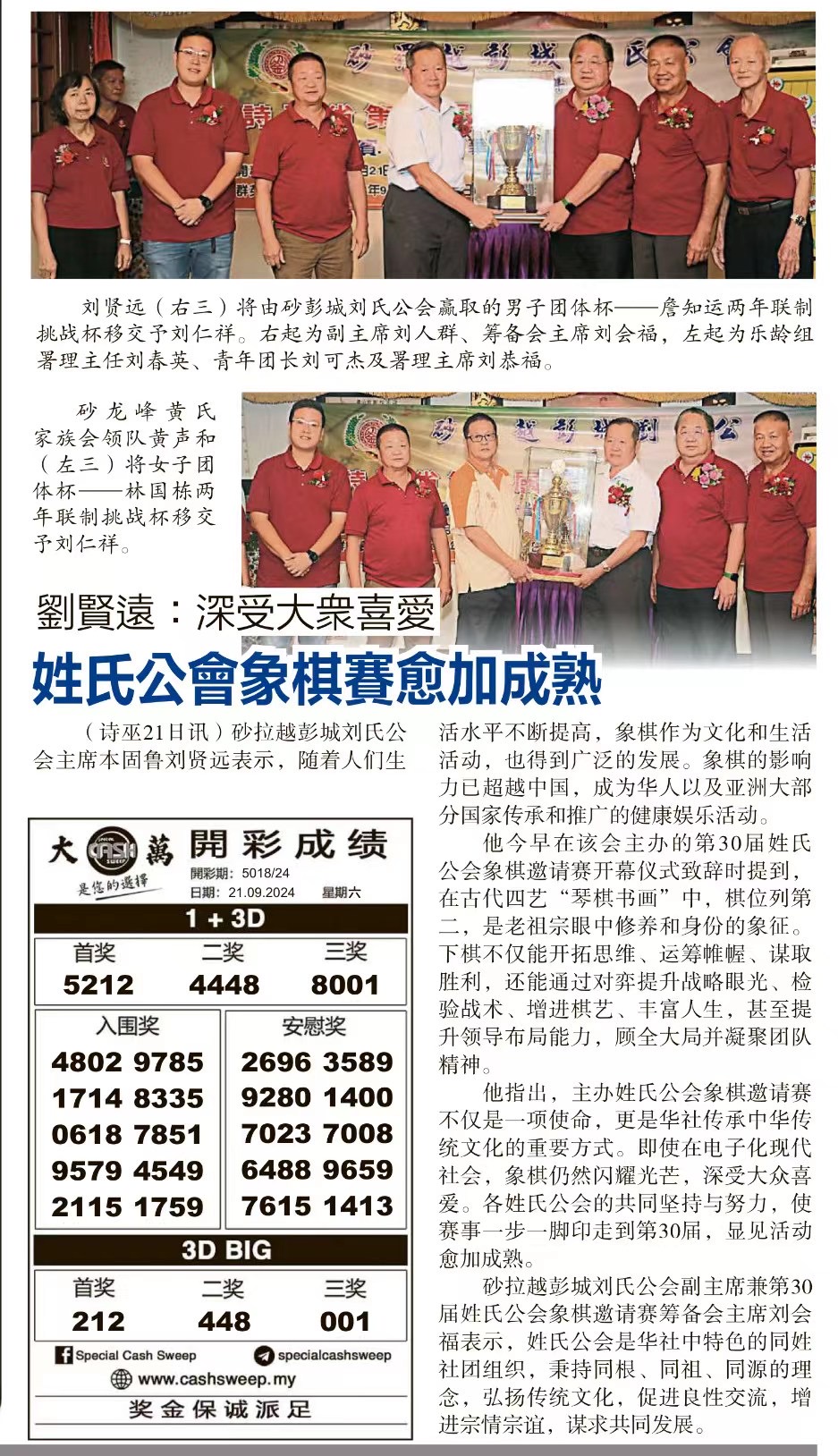 由本会所主办的《第三十届姓氏公会象棋邀请赛》,不仅是一种使命,更是华社对这项中华传统文化传承的延续,使之在一切已经电子化的时代,依然闪耀及广受欢迎。