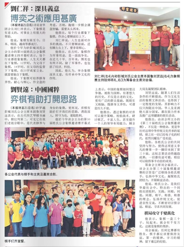 砂罗越彭城刘氏公会主办诗巫省第30届姓氏公会象棋邀请赛开幕礼-21-9-2024