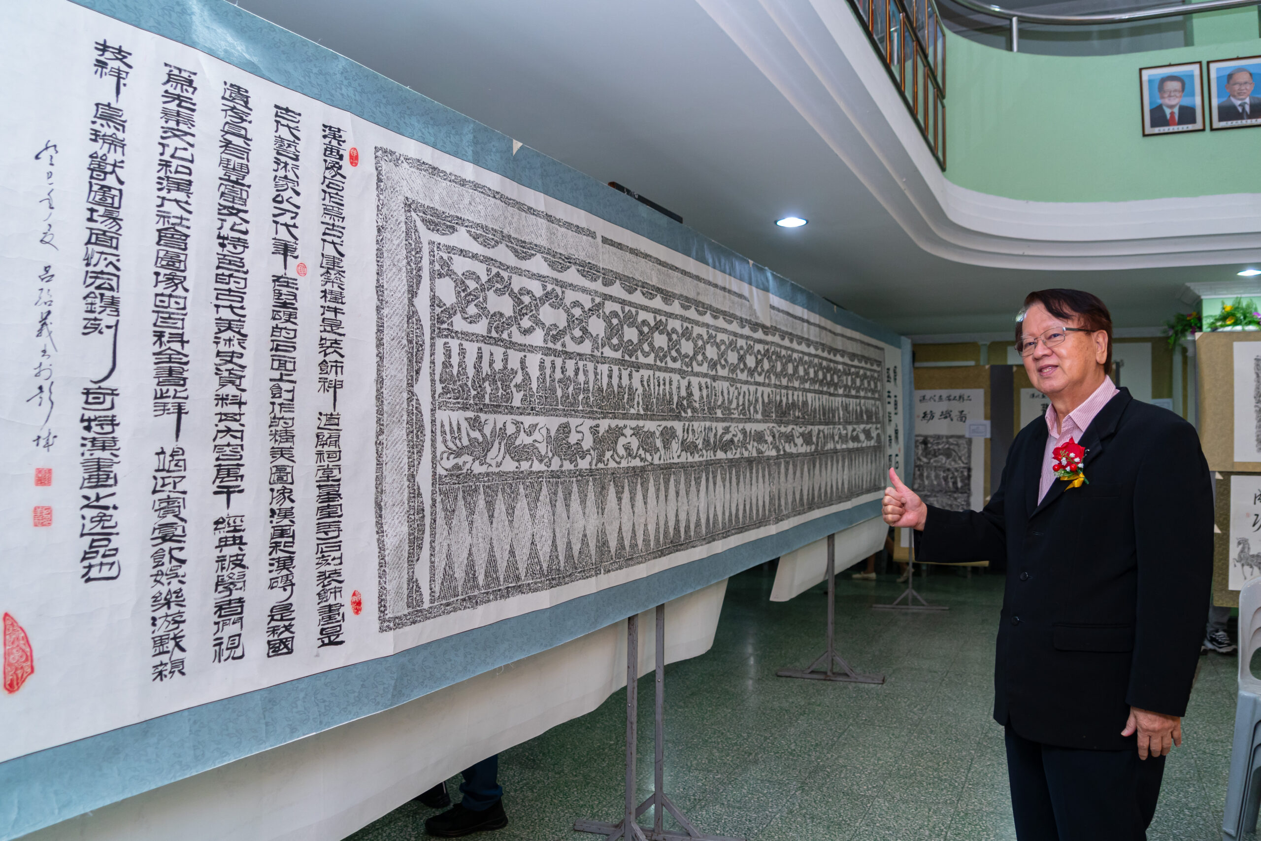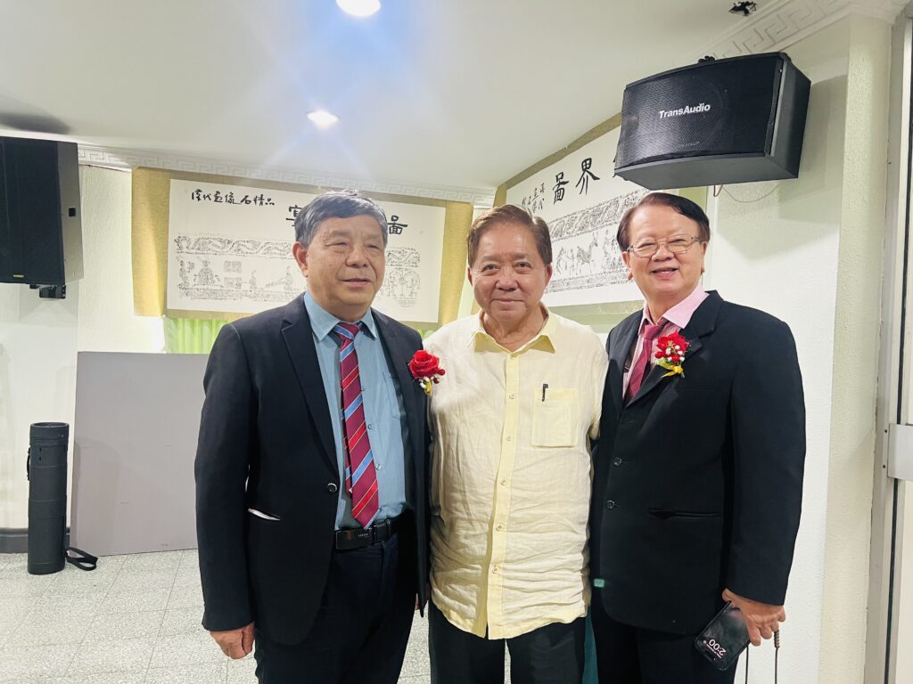 他在砂拉越彭城刘氏公会,徐州汉文化促进会主办,诗巫省华人社团联合总会,砂拉越华族文化协会,诗巫中华总商会,诗巫艺术协会,砂拉越科大孔子学院,世界福州十邑文物馆,诗巫当代美术协会,鹅江诗书协会,诗巫省独中董联会,诗巫水墨画协会联办铁笔写春秋,汉画探中华,汉画像石艺求品拓片展开幕礼上致词时说,而拓片,作为一种独特的艺术形式,是我们打开汉画像石神秘世界的一把珍贵钥匙。它通过宣纸、墨汁等简单却又极具韵味的材料,将汉画像石上那些或刚劲、或细腻、或古朴的线条,那些深浅不一、疏密有致的雕刻痕迹,一一清晰地呈现在我们眼前,让原本冰冷沉默的石头仿佛获得了新的生命,跨越千年的时光,与我们进行一场跨越时空的对话。