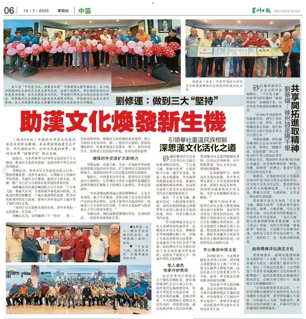 “千古龙飞地”的徐州,与“砂罗越的“新福州诗巫”,虽相隔千里,却共享着开拓进取的精神基因。从1901年刘家洙率族拓殖诗巫,到今日刘氏宗亲在工商、教育、文化领域的多元发展,我们始终以汉文化中的忠孝节义为立世之本。
