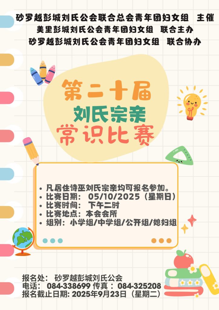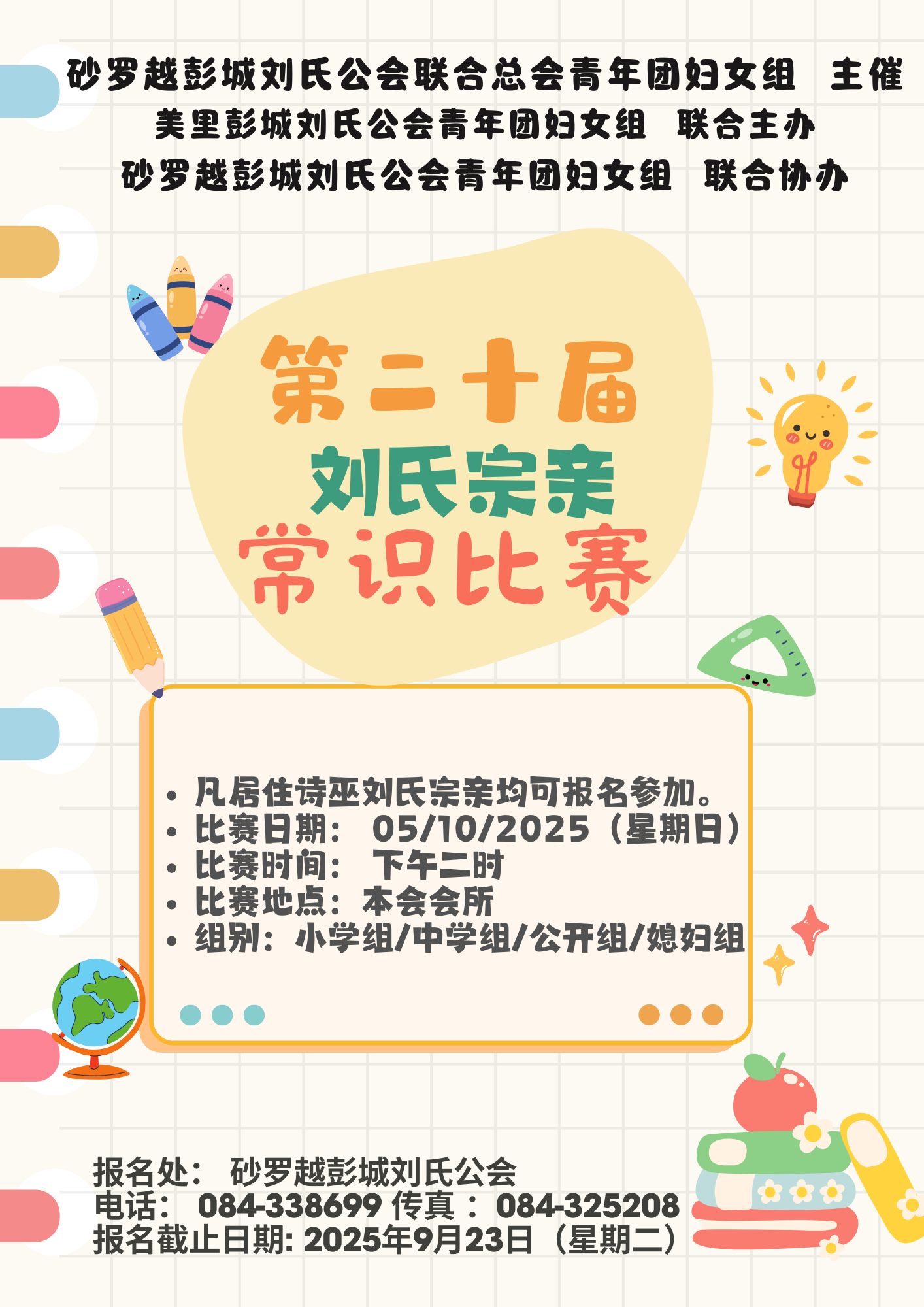 砂罗越彭城刘氏公会联合总会青年团妇女组主催, 美里彭城刘氏公会青年团妇女组联合主办 ,本会青年团妇女组联合协办, 第二十届【砂罗越彭城刘氏宗亲常识比赛】 -05/10/2025 Posted by spclau spclau | On 11 9 月,2025 | In 未分類 Related Posts 砂罗越彭城刘氏公会青年团妇女组联合主办第28届砂沙汶刘氏宗亲嘉年华会美术组选拔赛--24.08.2014 署理主席县议员恭福宗长获得砂羅越州元首敦丕顯斯里哈志阿都泰益瑪目颁发JBK勋衔-19/01/2022 砂罗越彭城刘氏公会联合总会第七届(2013-2014)第四次青年团妇女组及乐龄组会议--12-12-2014 About Author spclau Leave a Reply發佈留言必須填寫的電子郵件地址不會公開。 必填欄位標示為 *顯示名稱 * 電子郵件地址 * 個人網站網址 在瀏覽器中儲存顯示名稱、電子郵件地址及個人網站網址,以供下次發佈留言時使用。 Δ