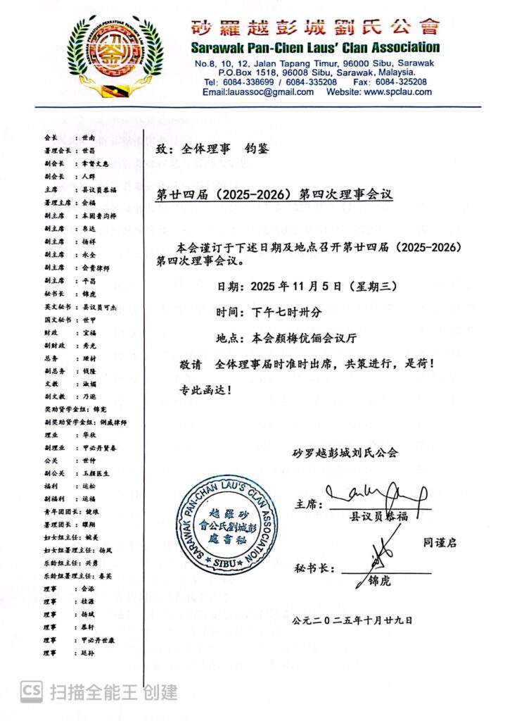 通告:砂罗越彭城刘氏公会第廿四届第四次理事会议-5-11-2025 Posted by admin | On 29 10 月,2025 | In 未分類 Related Posts 马拉端刘氏公会创会27周年纪念暨主办第29届砂沙汶彭城刘氏宗亲【嘉年华会】欢迎宴、各项比赛及欢送宴--11-13/12/2015 【通告】诗巫省华团妇女组主催。砂罗越彭城刘氏公会妇女组主办.【属组组委演讲比赛】--7-4-2013 【通知】砂罗越彭城刘氏公会青年团妇女组联合主办【慰劳宴】--30-12-2013 About Author admin Leave a Reply發佈留言必須填寫的電子郵件地址不會公開。 必填欄位標示為 *顯示名稱 * 電子郵件地址 * 個人網站網址 在瀏覽器中儲存顯示名稱、電子郵件地址及個人網站網址,以供下次發佈留言時使用。 Δ