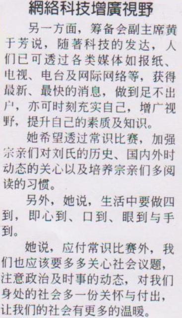 第八届[砂罗越彭城刘氏宗亲“常识比赛”]
