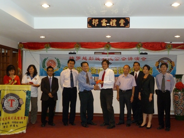 筹备会主席CC刘世荣颁发会内讲评演讲比赛安慰奖予ACB刘宜福