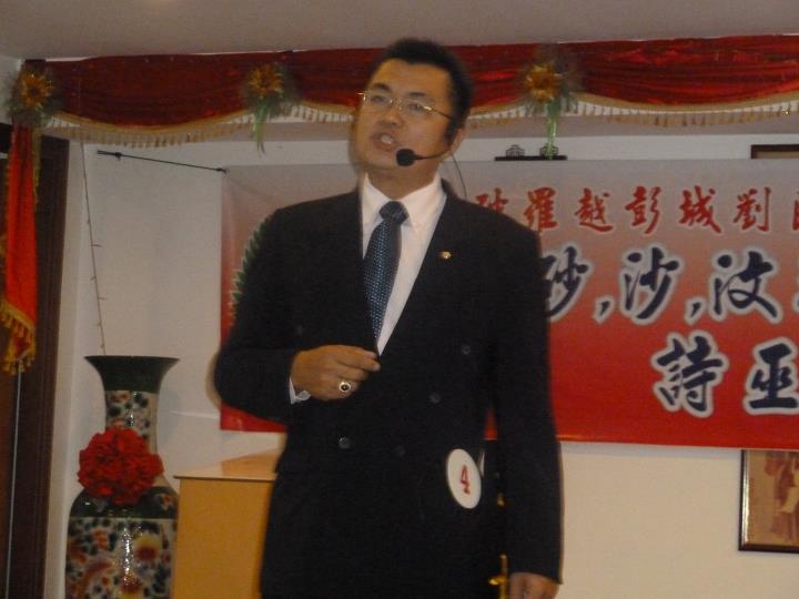 一年一度的嘉年华会选拔赛,有众多的宗亲参与了各项的比赛。尤其是书法组,一项具有中华文化特色的艺术。更被誉为:无言的诗,无行的舞 ;无图的画,无声的乐。写书法,是段练我们的耐心,是修身养性最好的方法。这项选拔赛,目的是要让宗亲们互相交流,并且要选出代表参加假沙巴山打根举行的第25届砂,沙,汶【嘉年华会】书法组比赛。这次的比赛,总共吸引了 位宗亲参加,有你们的参与,为这项盛会增添不少的热闹和光彩。在此,我要特别感谢主宾,本会副主席:世南宗长为这项选拔赛主持挥毫礼。也要特别谢谢全体筹备会同仁,大家极力的配合与努力之下,让今天这项比赛能够成功顺利举行。最后,让我祝贺大家身体健康,万事如意。