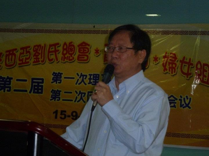 今晚是巴株一周年纪念及青年团,妇女组成立典礼,得到总会重视,第二次在这里召开。中国崛起,对我们世刘总会对宗亲的另眼看待。致使刘氏总会更上一层。我们东西马刘氏宗亲非常出色,全马及全世界,刘姓排名是第4位,刘氏一家亲,各位宗亲来峇株巴辖短暂的时间,祝愿大家万事如意!